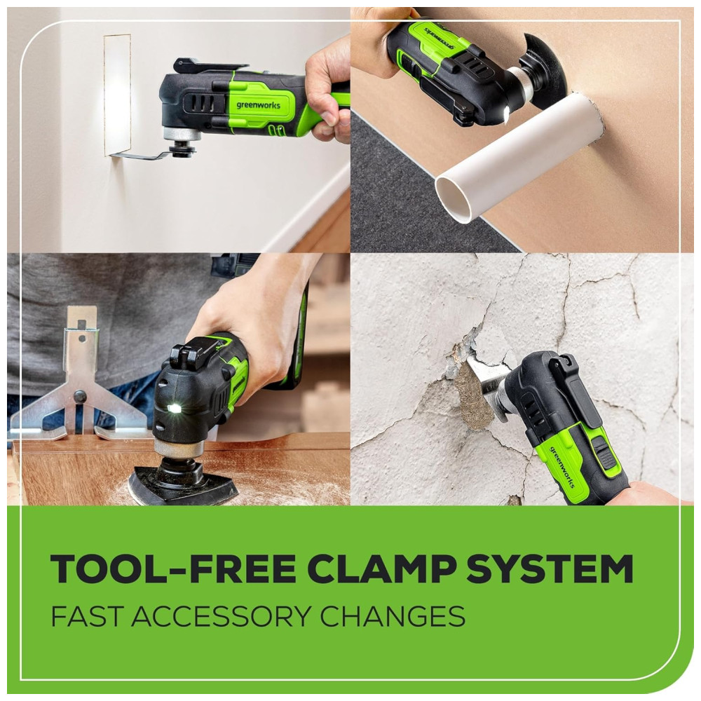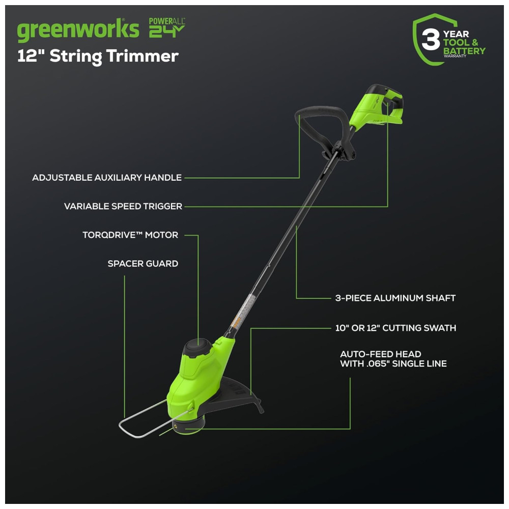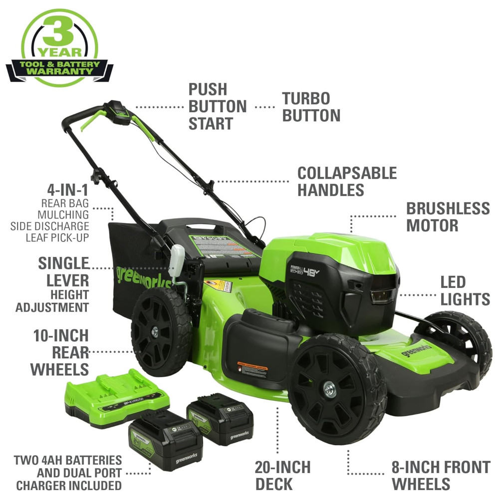 Kit Sem Fio Greenworks 48V: Cortador de Grama Aparador de Grama Soprador de Folhas 320 CFM e Multi Ferramenta 24V