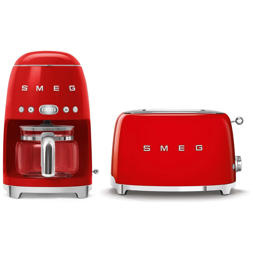 Conjunto Smeg Retro: Cafeteira de Filtro e Torradeira de 2 Fatias Vermelha