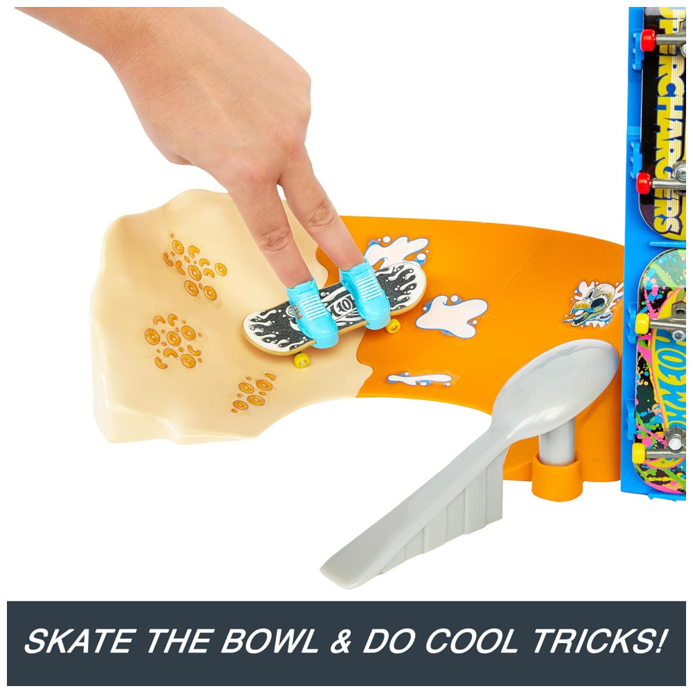 Execute truques incríveis de escala no conjunto Hot Wheels Skate Tony Hawk Cereal Skate Bowl.