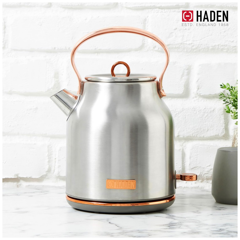 Conjunto torradeira 4 fatias e chaleira elétrica HADEN Heritage inox preta e cromada 17L 110V