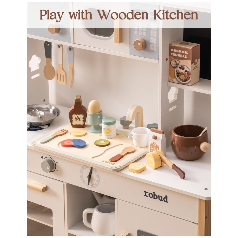 Conjunto Único de Comida Educativo de Madeira ROBUD com 31 Peças para Crianças – Brinquedos de Cozinha Montessori Educativos e Divertidos