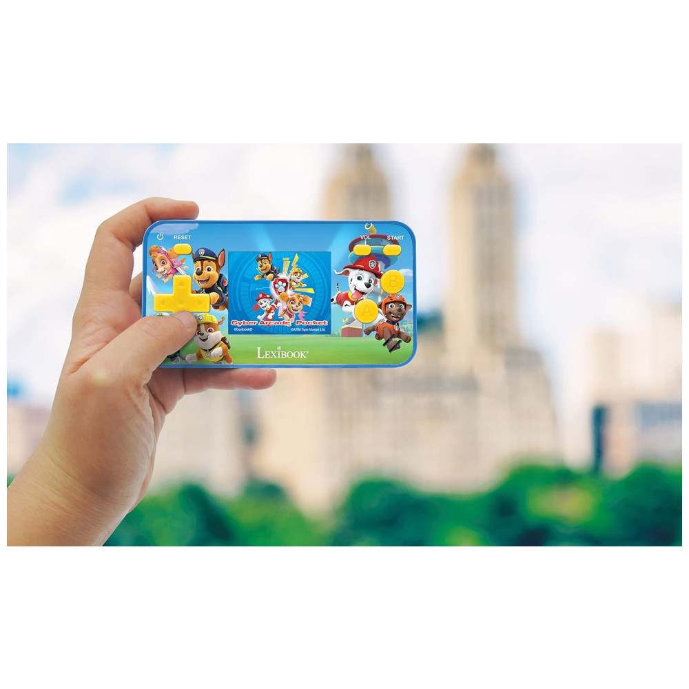 O 150em1 10 Paw Patrol oferece 140 jogos clássicos de esporte, ação, lógica, aventura, plataformas e muito mais Com este dispositivo, é possível caçar monstros, escapar de zonas perigosas, marcar gols e vencer corridas selvagens, proporcionando horas de diversão para todos. A tela LCD colorida de 1,8 4,5 cm permite uma experiência de jogo nítida e agradável.