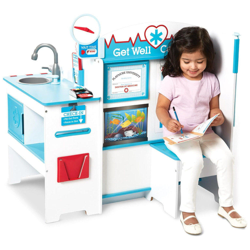 Consultório Médico Infantil de Madeira com Sala de Espera Sala de Exame e Área de Check in para Crianças Acima de 3 Anos Melissa & Doug