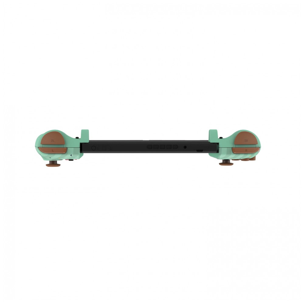 O Hori Split Pad Pro Pikachu e Eevee é um conjunto de controladores em formato completo para uso em modo portátil no Nintendo Switch, oferecendo experiência semelhante a um controle tradicional acoplado aos trilhos laterais do console. Cada módulo apresenta alças maiores, analógicos de tamanho ampliado, gatilhos largos e direcional em formato de cruz, priorizando precisão de comando e conforto em sessões prolongadas de jogo.