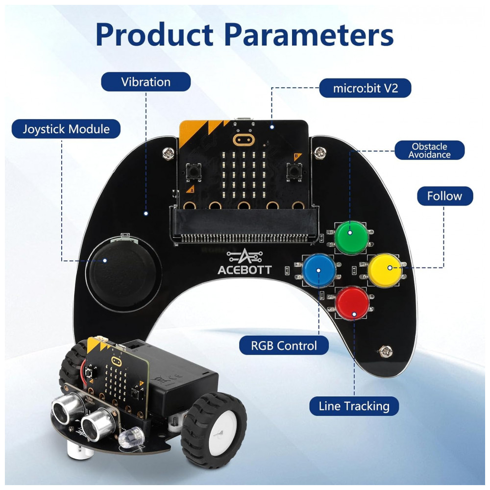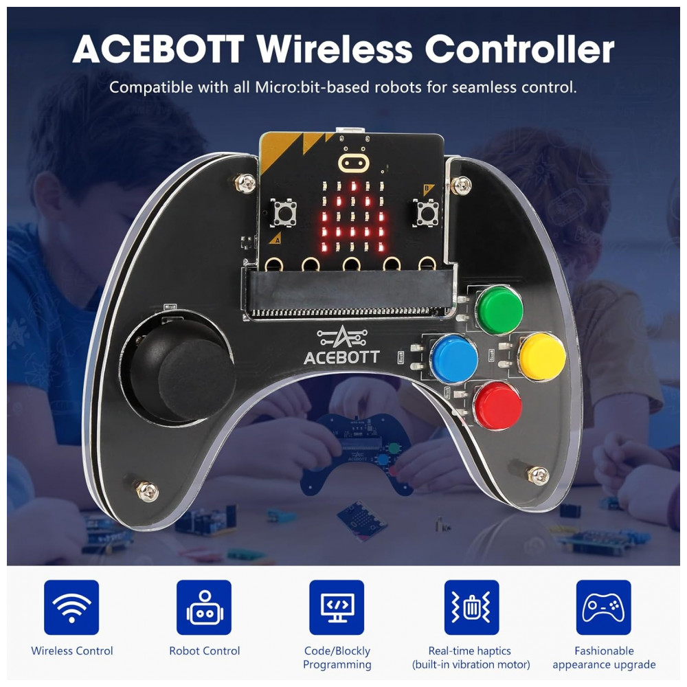 Controle sem fio ACEBOTT QD026 STEM para robôs micro:bit com joystick vibração compatível MakeCode inclui placa micro:bit