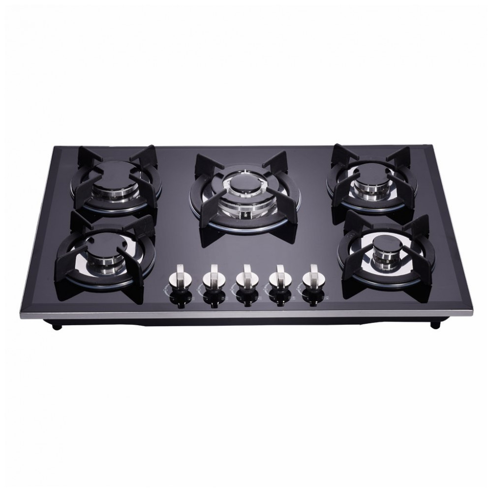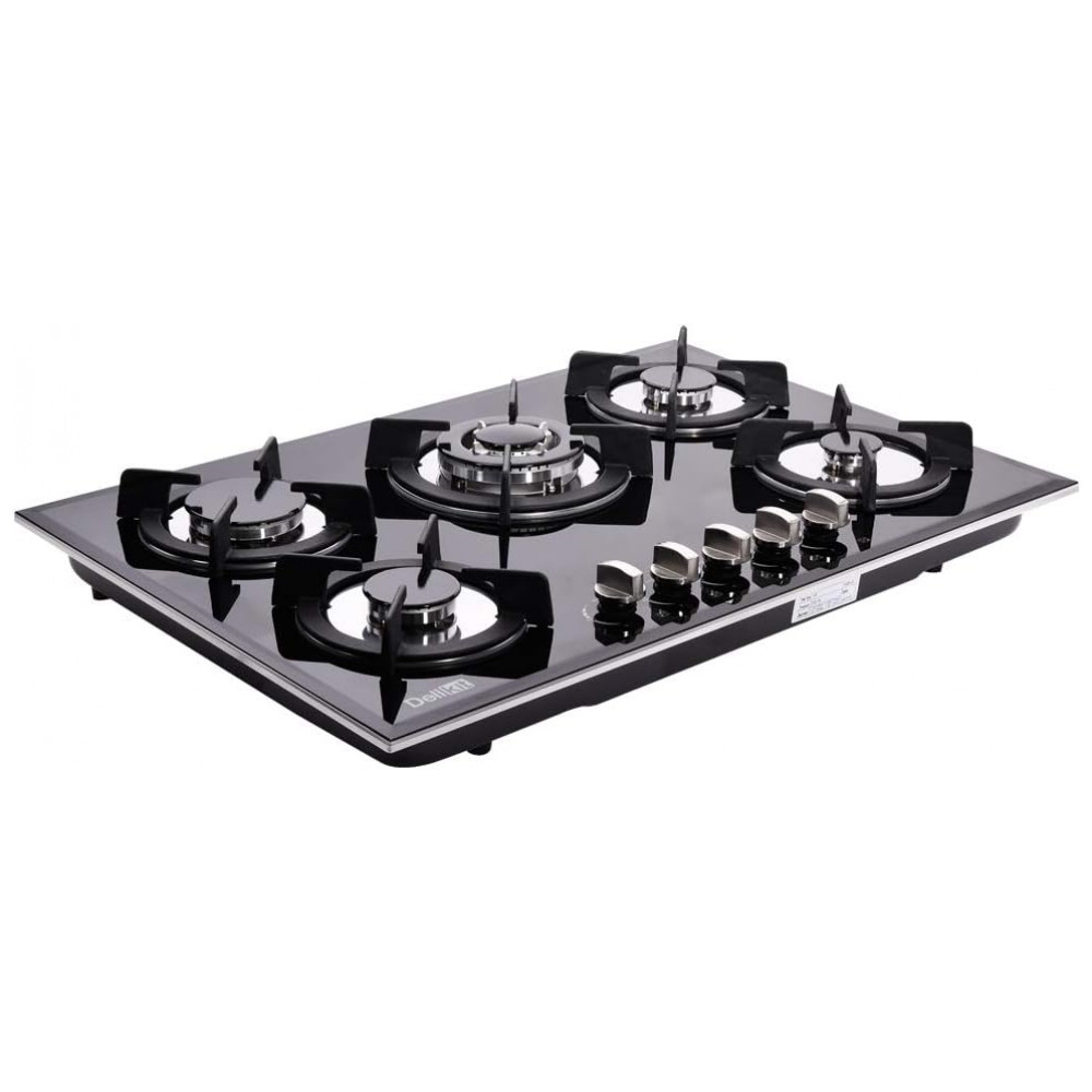 Cooktop a gás 5 bocas Deli-Kit vidro temperado preto embutir dupla alimentação queimadores selados 110V