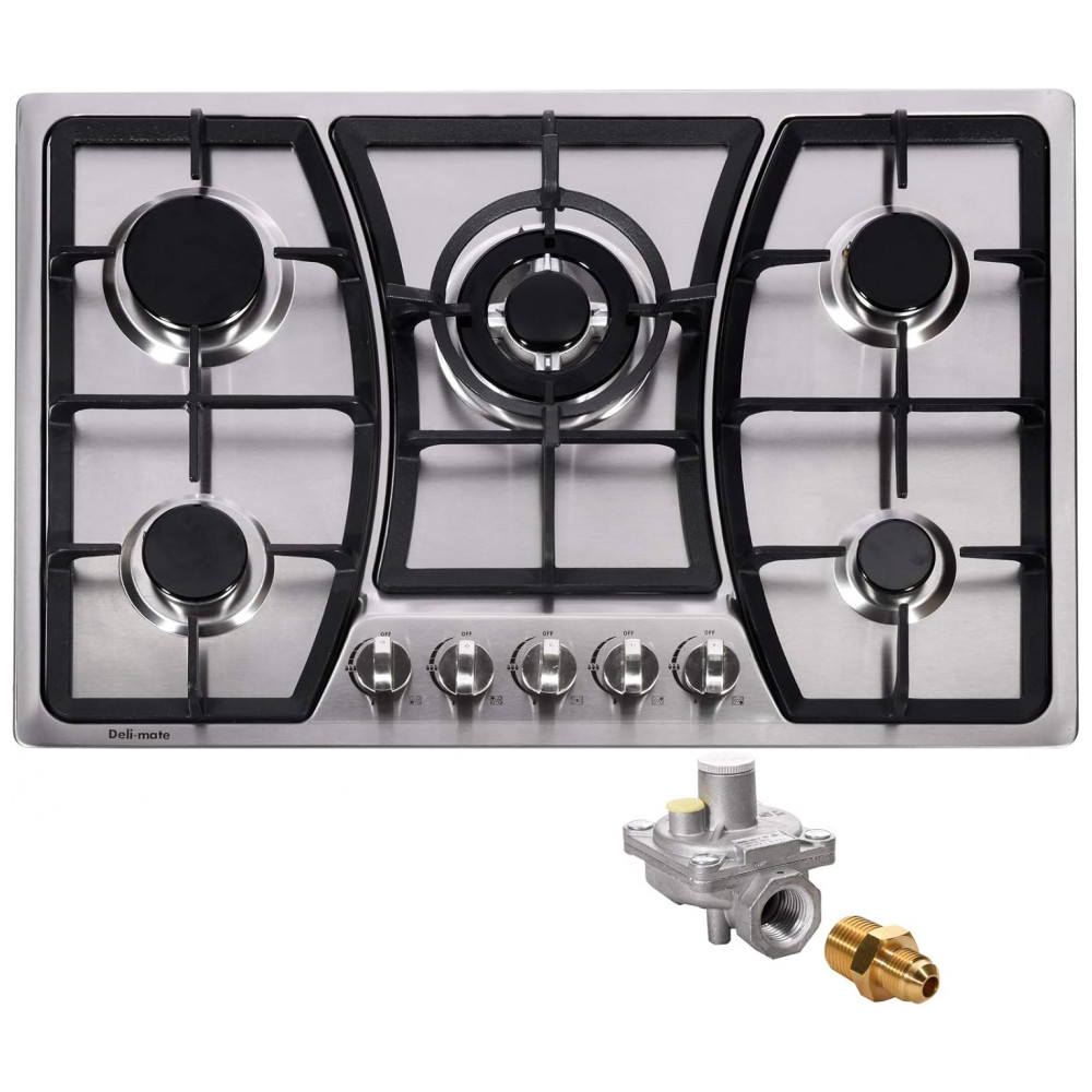 Cooktop a gás 76cm Deli-mate inox 5 queimadores selados 42718BTU conversível GN/GLP acendimento elétrico 110V