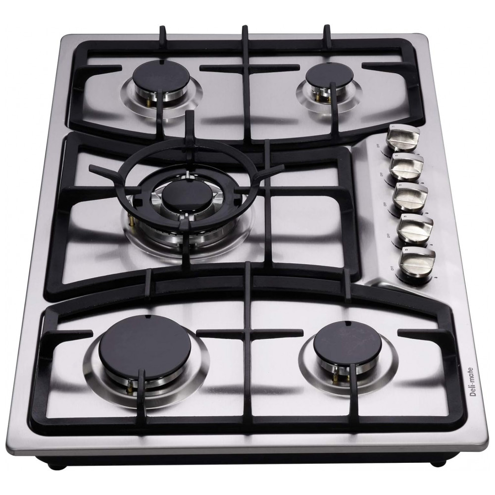 O cooktop a gás 76cm Deli-mate DM527-SA03Z oferece cinco queimadores selados em superfície de aço inoxidável 304, projetado para instalação embutida em cozinhas residenciais. A mesa em inox é resistente ao calor e à descoloração, enquanto o desenho dos queimadores selados ajuda a impedir a entrada de resíduos na base, facilitando a limpeza com pano úmido e detergente neutro.