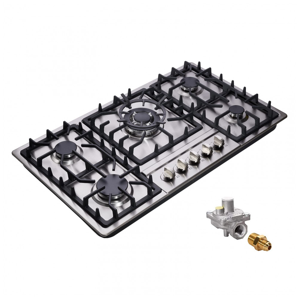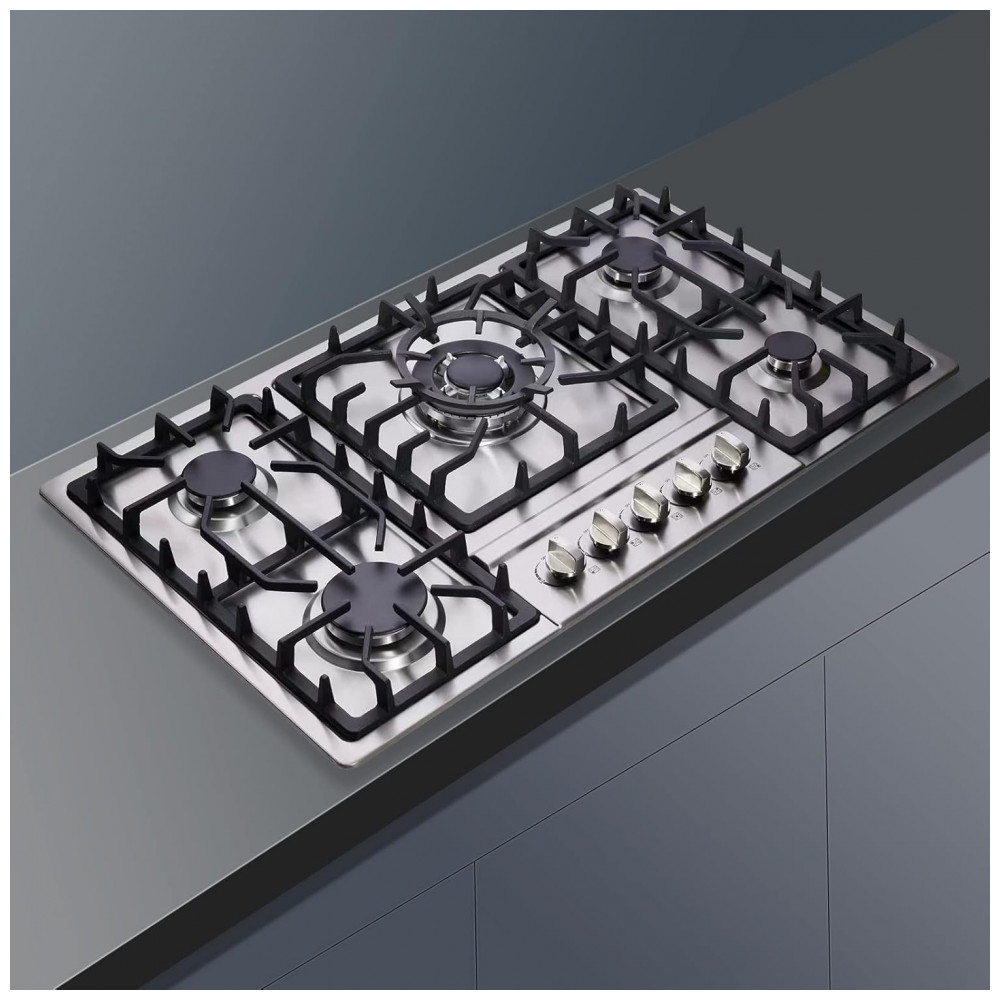 Cooktop a gás 86cm Deli-mate inox 5 queimadores selados 42718BTU dual fuel GN/GLP acendimento elétrico 110V