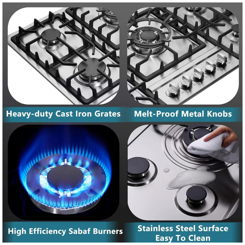 O cooktop a gás 86cm Deli-mate DM5808 oferece cinco queimadores a gás em superfície de aço inoxidável 304, projetado para instalação embutida em cozinhas residenciais e espaços gourmet. A mesa em inox é resistente ao calor e à descoloração, enquanto os queimadores selados ajudam a evitar a entrada de resíduos na base, facilitando a limpeza com remoção das grades e passagem de pano úmido com detergente neutro.
