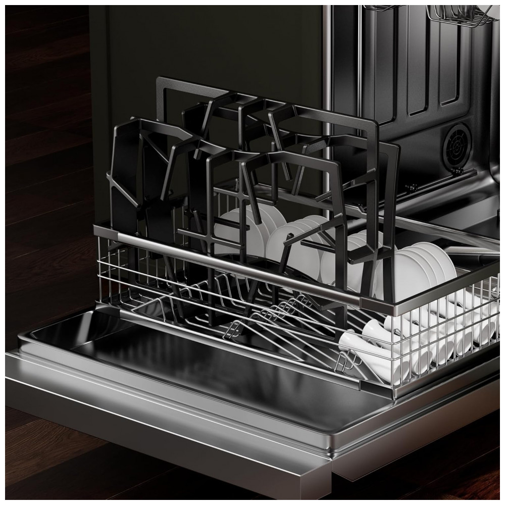 A configuração de aquecimento conta com um queimador triplo de 20000BTU, um queimador rápido de 10500BTU, dois queimadores semirrápidos de 8000BTU e um queimador auxiliar de 4500BTU, totalizando 57500BTU, permitindo desde fervuras rápidas e frituras em alta chama até cozimentos delicados em fogo baixo. As grades em ferro fundido de borda a borda funcionam como grade contínua, oferecendo apoio estável para panelas de diferentes diâmetros e facilitando o deslocamento entre as zonas de aquecimento.