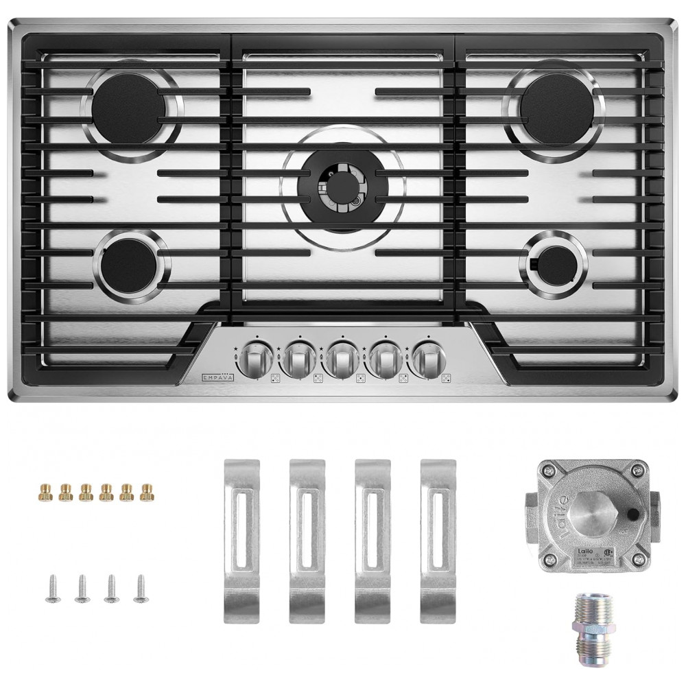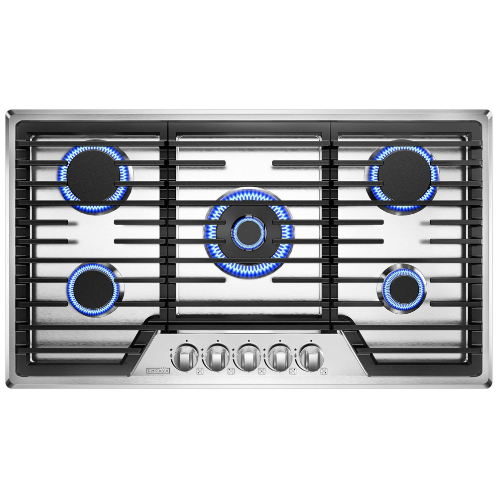 Cooktop a gás 91cm Empava inox 5 queimadores SABAF selados 57500BTU dual fuel GN/GLP ignição por ionização 110V