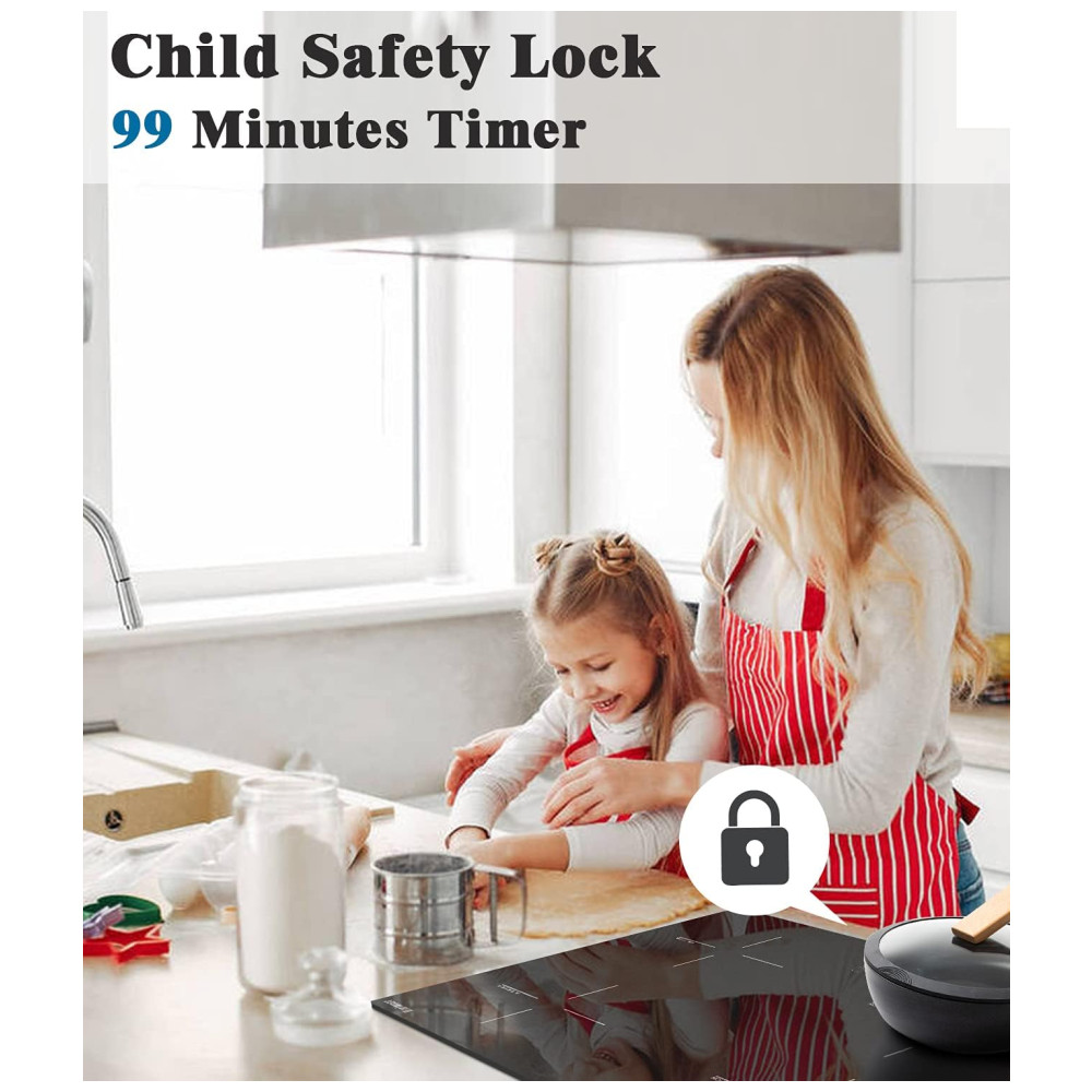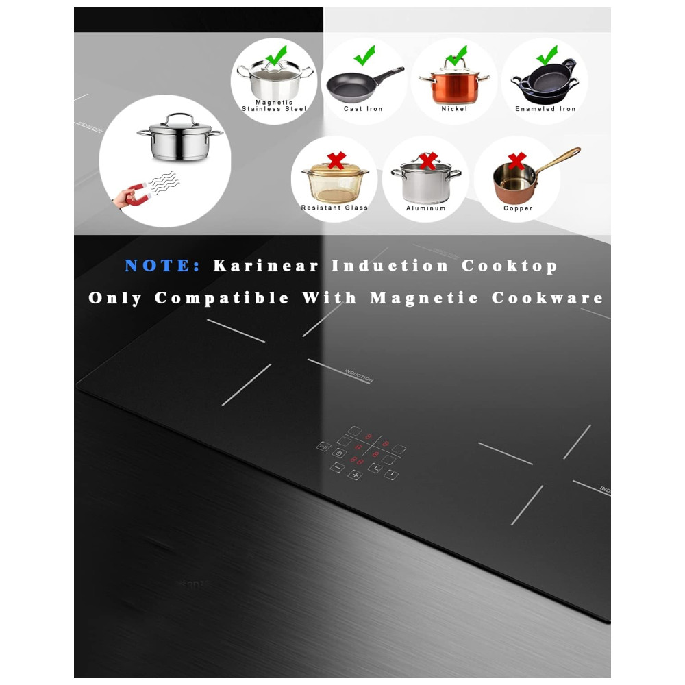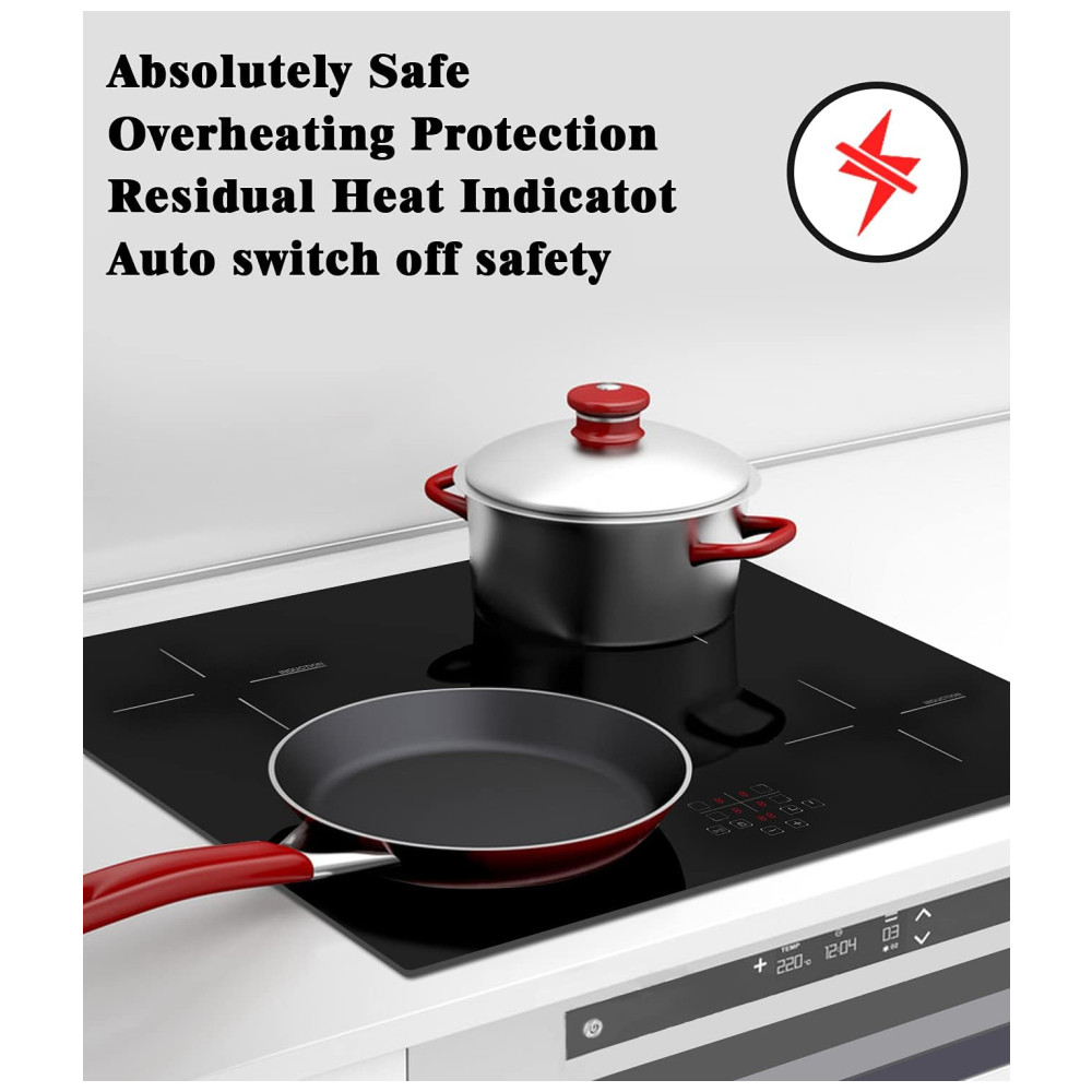Cooktop de Indução Karinear 24” 4 Zonas Preto Vidro Vitrocerâmico Timer Trava Segurança 6400W 220V Embutir