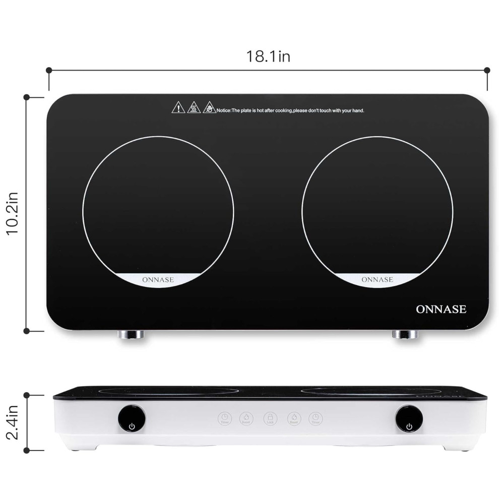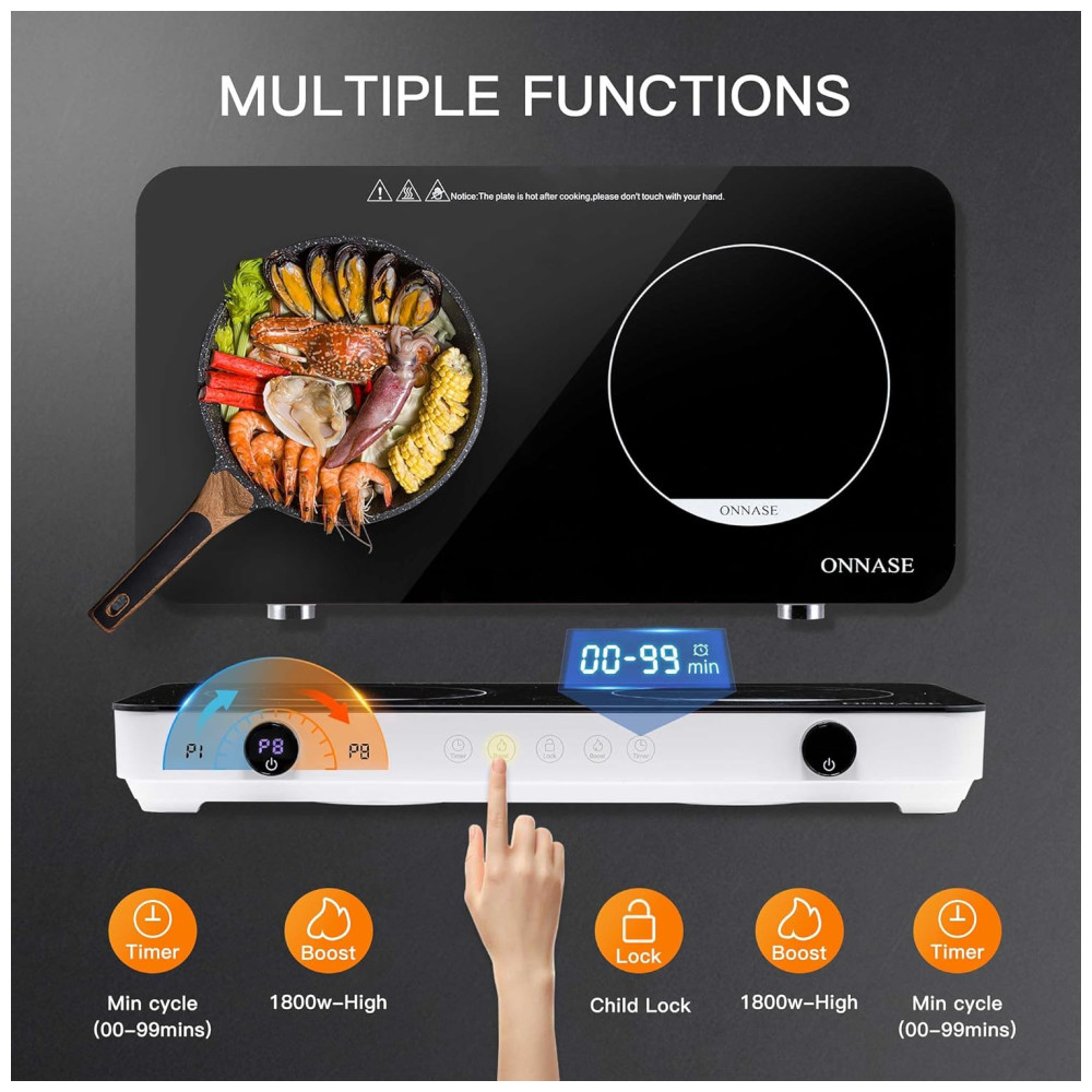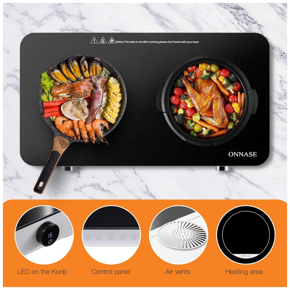 Cooktop de Indução Elétrico Portátil com 2 Queimadores e Controle Digital 110V 1800W ONNASE Preto