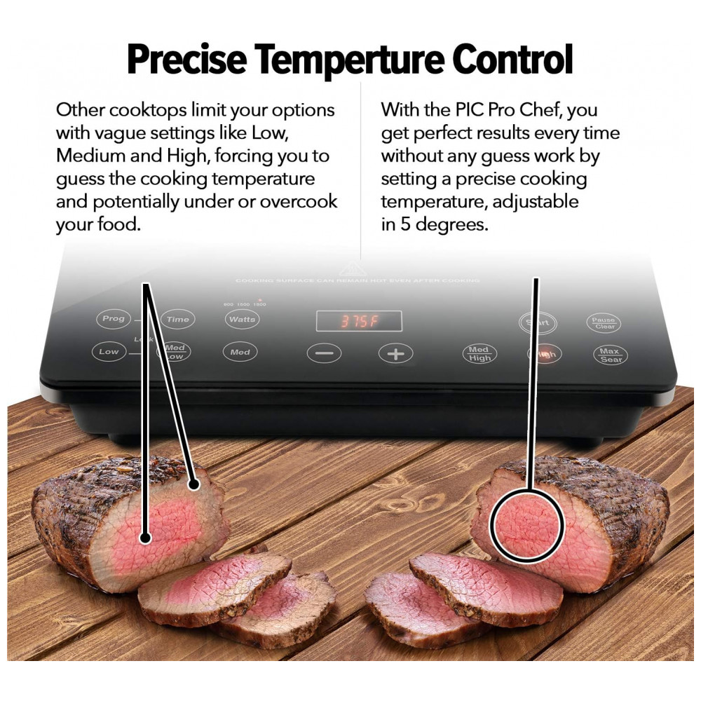 FAÇA AJUSTES NA HORA! Precisa de uma temperatura mais alta ou de um tempo de cocção maior? Sem problemas. Ajuste a qualquer momento sem precisar recomeçar. Os controles digitais intuitivos do Pro Chef são fáceis de operar, com resposta imediata. CONTROLE DE TEMPERATURA PRECISO Com 94 temperaturas precisas ao seu alcance, você pode manter molhos delicados aquecidos ou grelhar um suculento bife. CERTIFICADO PELA NSF, o Pro Chef foi testado e certificado pela NSF International, atendendo aos padrões de durabilidade da indústria e sendo resistente a impactos. CONSTRUÇÃO DE ALTA QUALIDADE fabricada com materiais e componentes de alta qualidade, o Pro Chef se destaca em qualquer ambiente, inclusive cozinhas profissionais. VIDRO CERÂMICO RESISTENTE A IMPACTOS com superfície de aquecimento em vidro cerâmico resistente a impactos. Ele foi rigorosamente testado para suportar calor intenso sem quebrar. Tecnologia SUPERIOR com design fino e tecnologia de isolamento patenteada, o Pro Chef leva as bobinas de aquecimento por indução mais próximas de suas panelas do que a concorrência, garantindo aquecimento rápido e uniforme. PERFEITO PARA SELAR, os chefs determinaram que 301 graus celsius era ideal para grelhar um bife suculento com uma selagem perfeita. RÁPIDO E EFICIENTE, o Pro Chef transfere 85-90 de sua energia eletromagnética para energia térmica, cozinhando mais rápido, economizando energia e sendo mais seguro que fogões tradicionais. Compatível com dormitórios, trailers e apartamentos pequenos. Trabalha perfeitamente com potências limitadas.