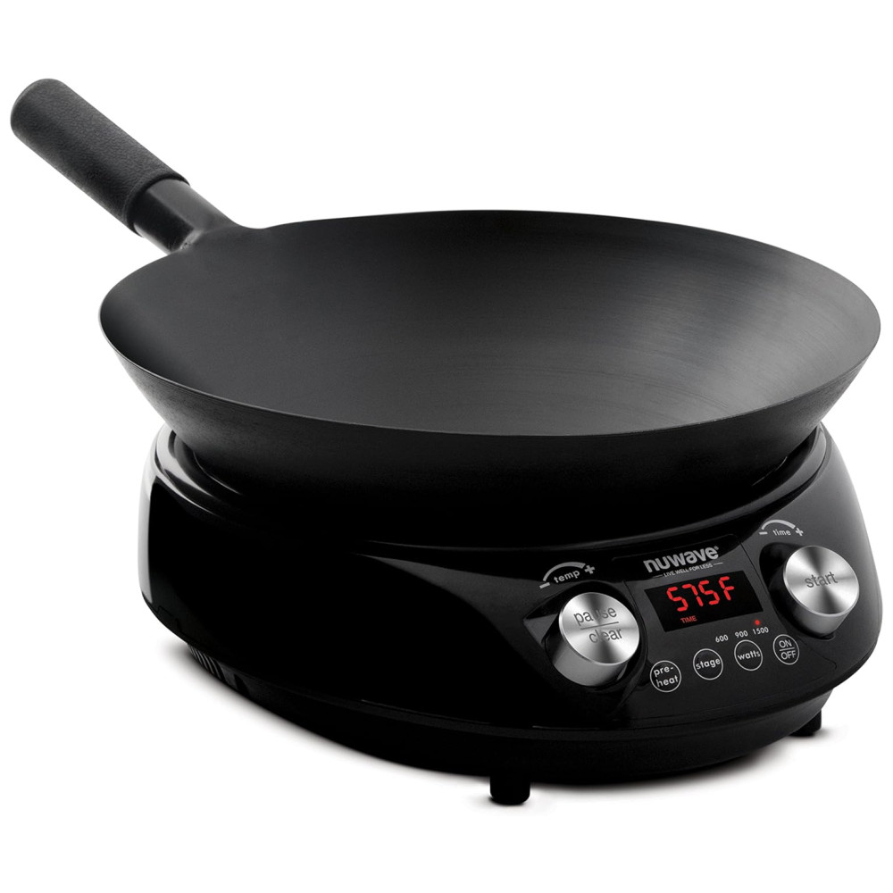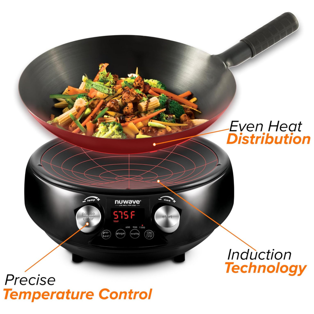 Cooktop de Indução Portátil com 6 Configurações de Temperatura Predefinidas e Panela de Aço Carbono de 35cm Incluída 110V 1500W Nuwave Preto
