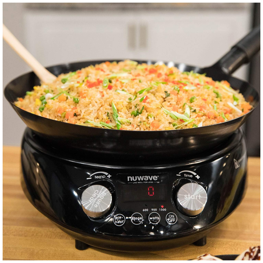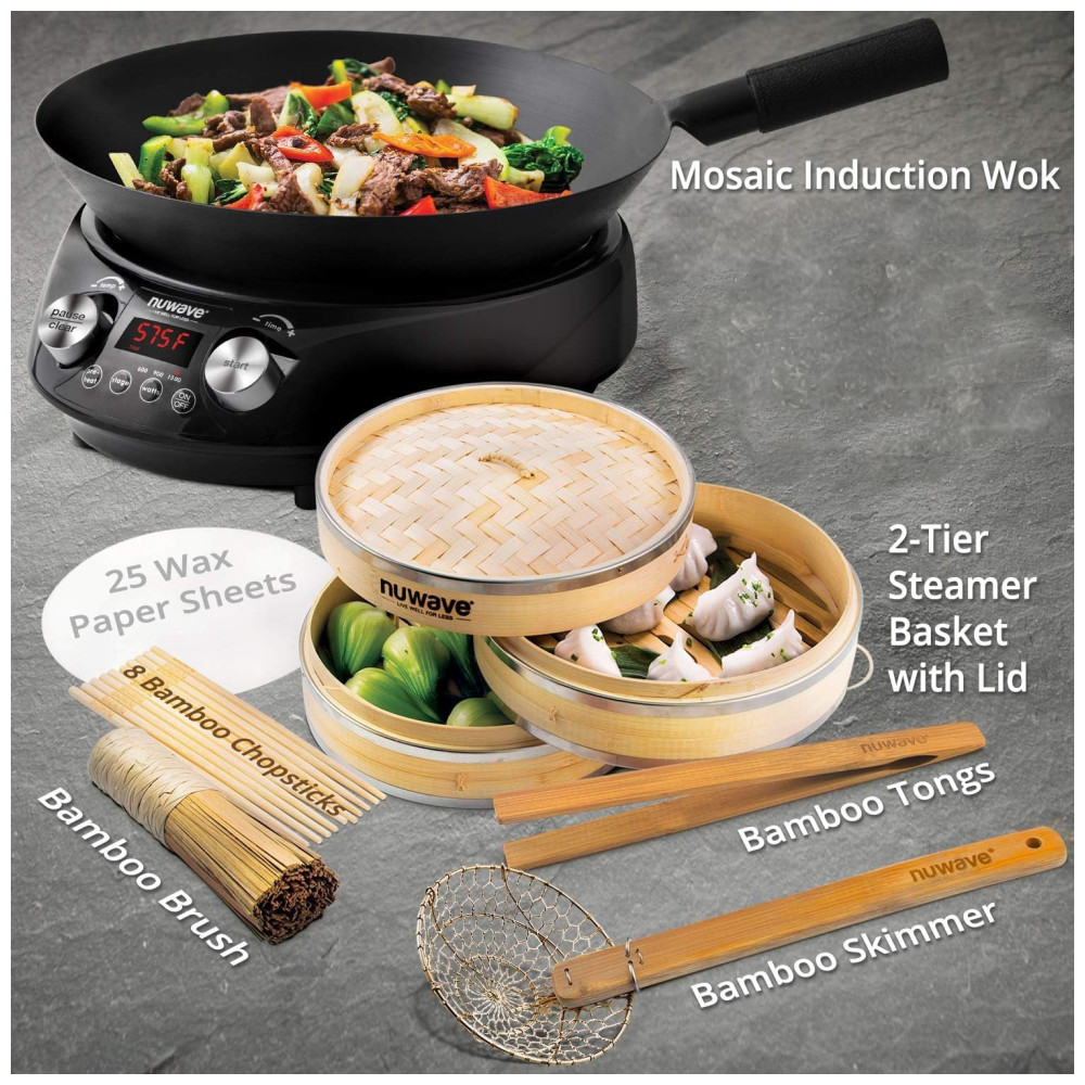 Cooktop de Indução Portátil com Controle de Temperatura Livro de Receitas Wok Panela de 35vm e 8 Acessórios de Bambu Incluídas 110V 1500W Nuwave Preto