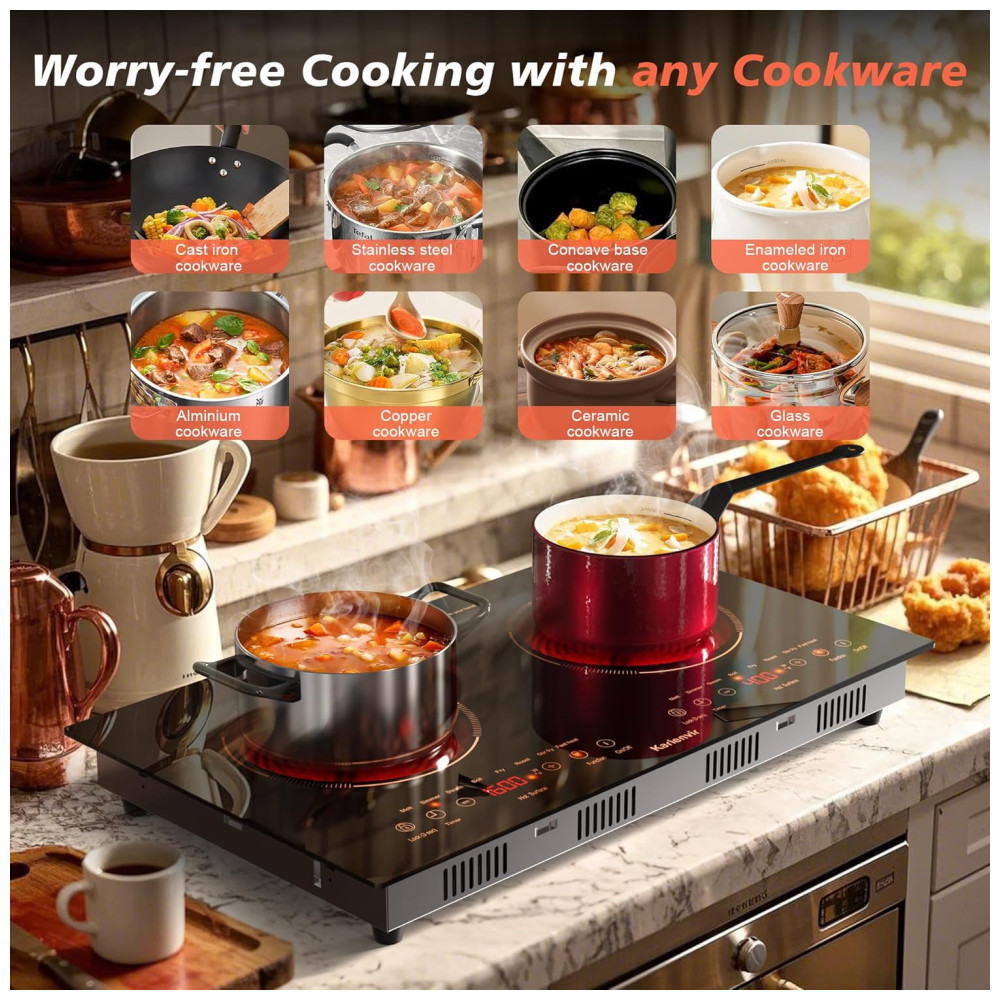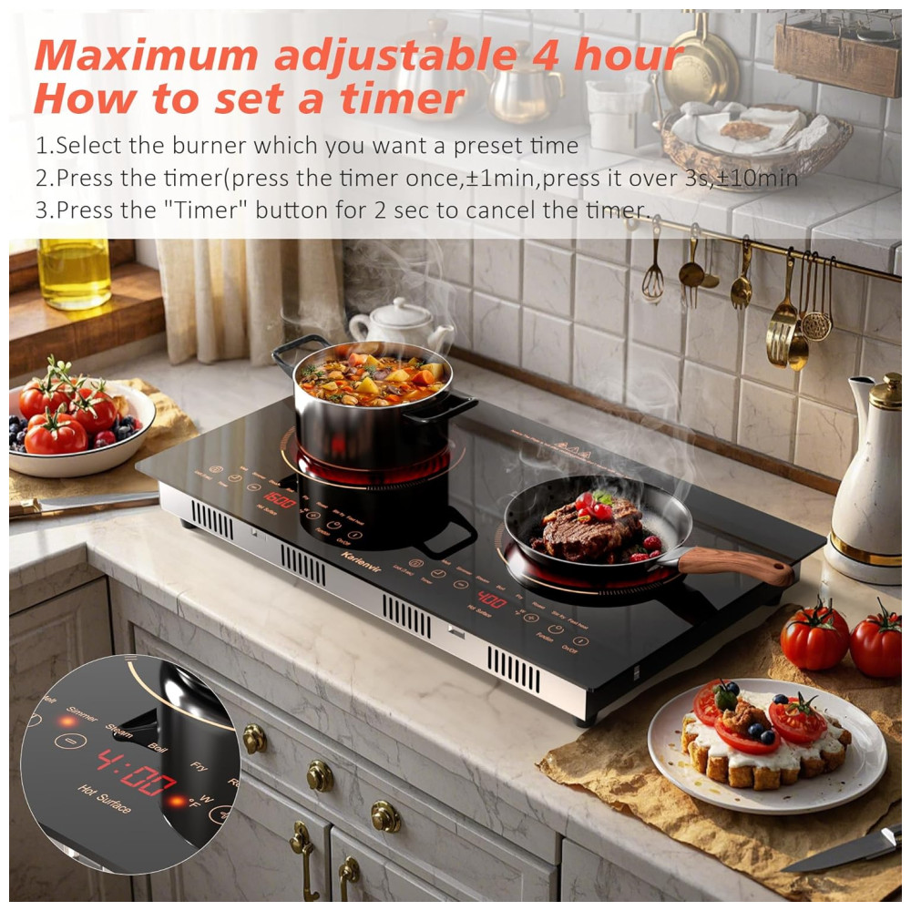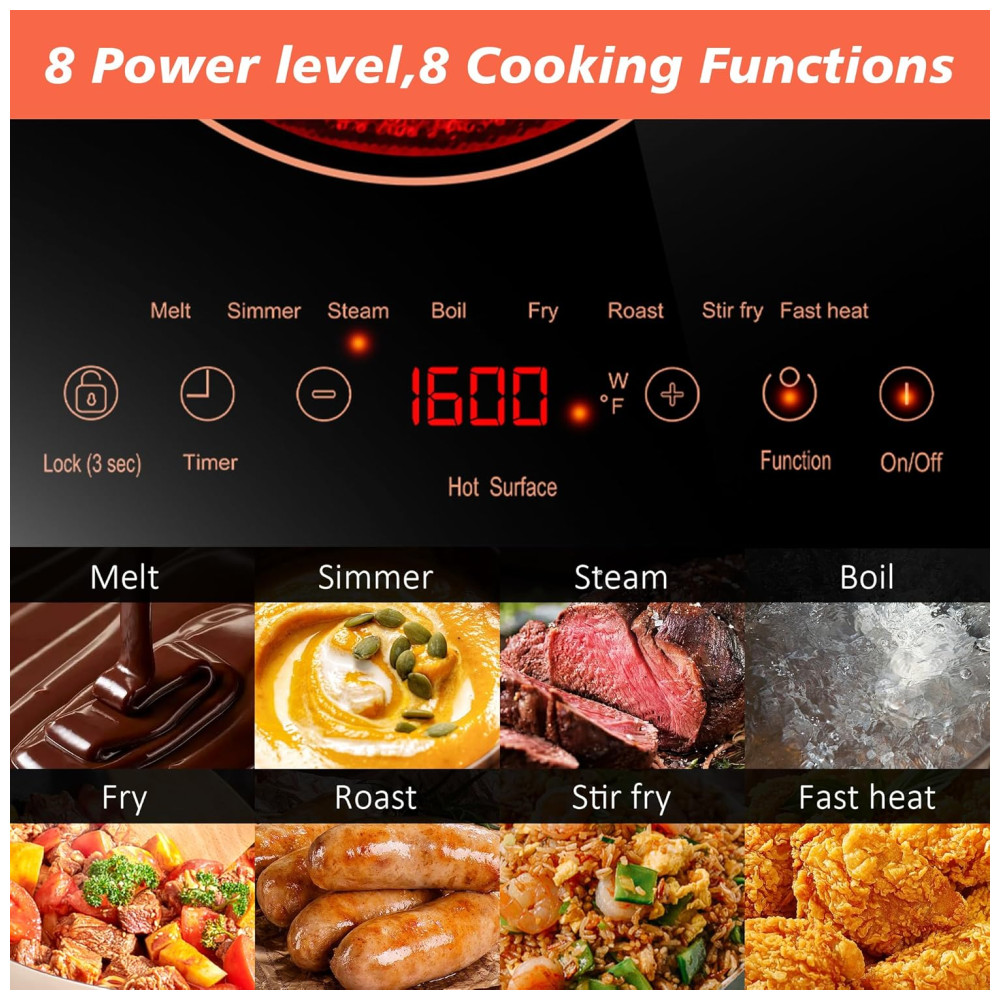 O Cooktop Elétrico com design horizontal e 2 queimadores possui amplo espaço para cozinhar uma grande variedade de pratos simultaneamente, garantindo eficiência na cozinha. Com potência total de 2000W, oferece distribuição dinâmica de energia e 8 níveis de potência. Pode ser instalado embutido ou usado como cooktop portátil, atendendo diversas necessidades. Com 8 funções de cozimento, controle por toque, bloqueio de segurança e timer de até 240 minutos, proporciona praticidade e segurança para cozinhar com precisão. Ideal para cozinhas compactas, acampamentos e grandes reuniões familiares.