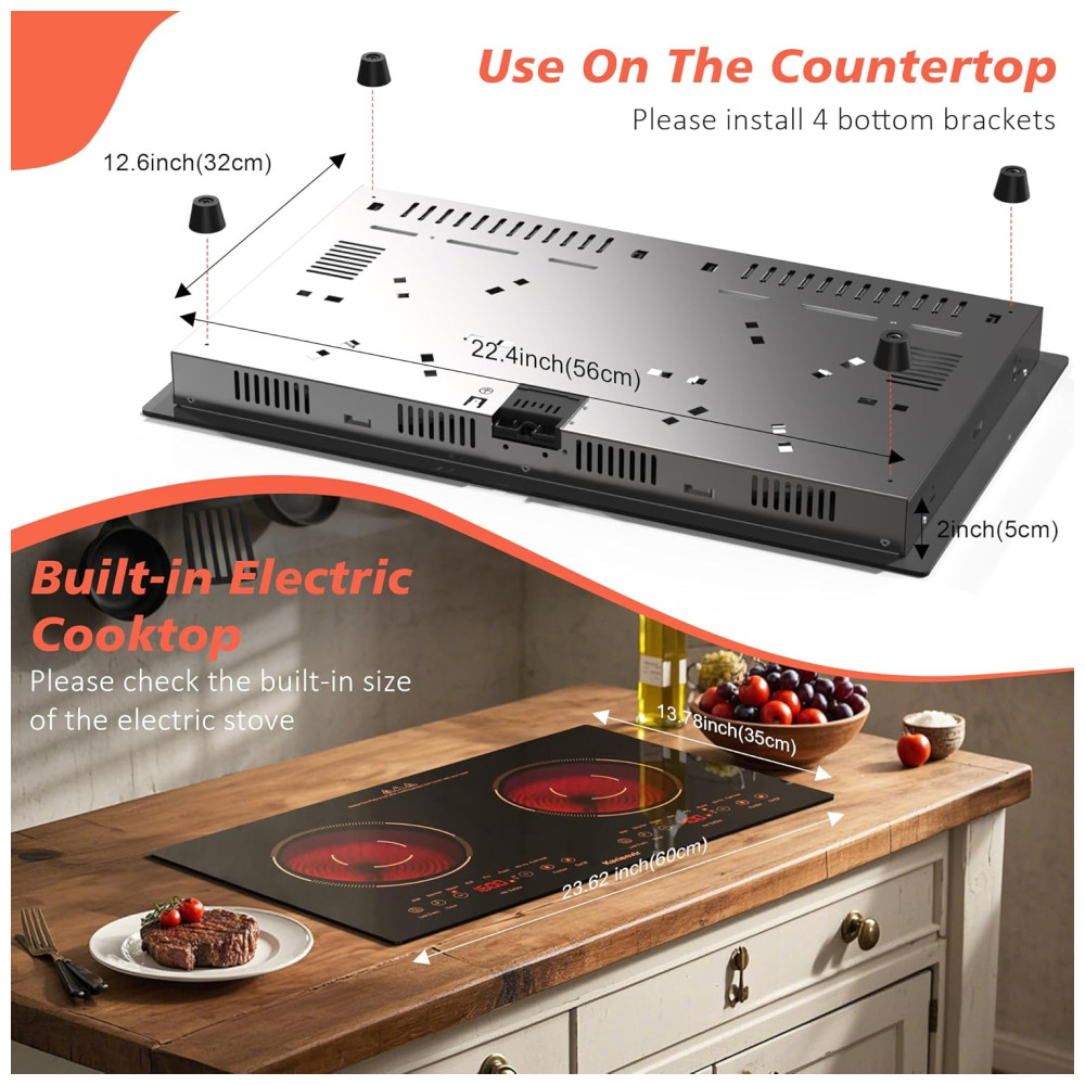 Cooktop Elétrico 2 Bocas 110v 60cm Embutir Touch Segurança Timer 2000W.Karienvir