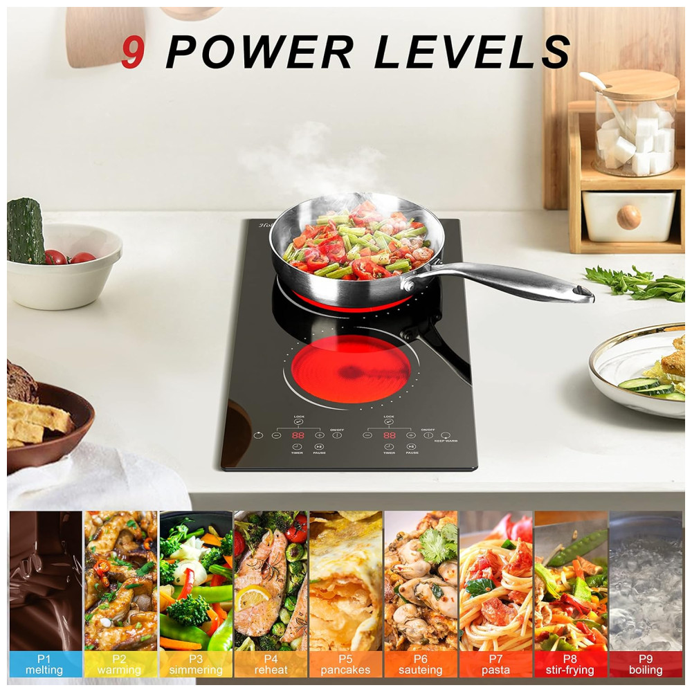 O Cooktop Elétrico de 2 bocas 110v é perfeito para quem busca praticidade na cozinha. Com design de fácil instalação, basta conectar o fogão em qualquer tomada 110v e começar a cozinhar imediatamente, sem a necessidade de fiação complicada. Com aquecimento de duas zonas (600W/1400W), permite cozinhar com panelas de tamanhos diferentes simultaneamente. Possui sistema de proteção com bloqueio de segurança, proteção contra sobreaquecimento e timer. Com 9 níveis de potência, é ideal para diversas preparações culinárias. Fácil de limpar e manter, seu design moderno em cerâmica fosca é um diferencial.