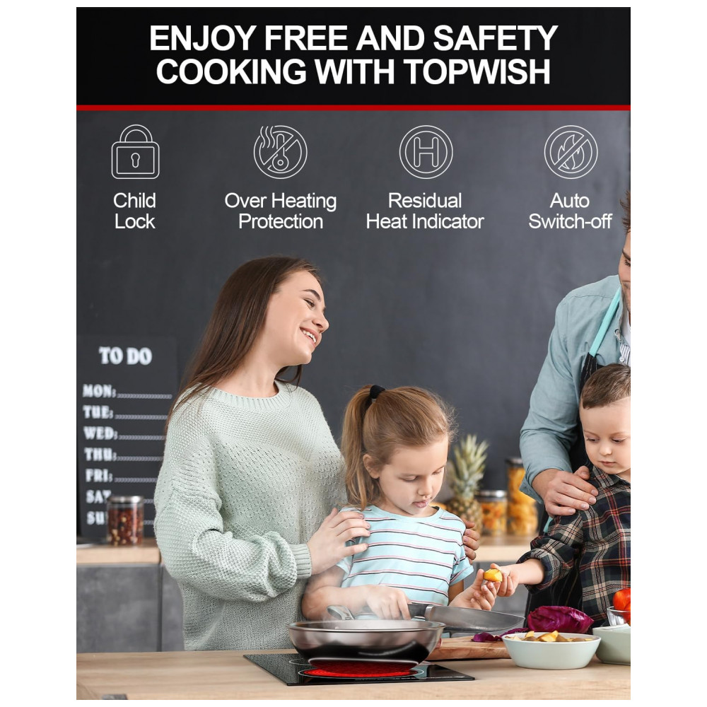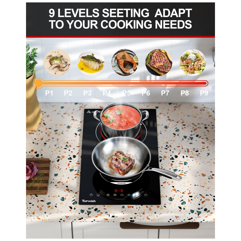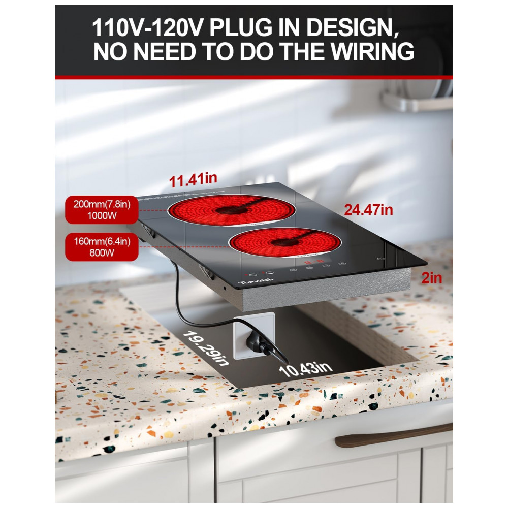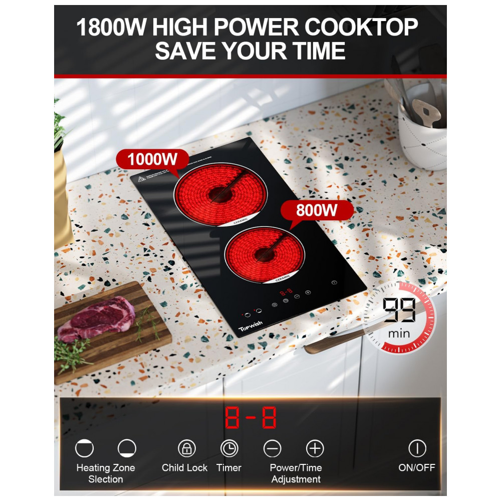 Cooktop Elétrico de 2 Bocas Cooktop de Cerâmica Embutido de 3048 cm Cooktop Elétrico de 120v com Trava de Segurança para Crianças Timer