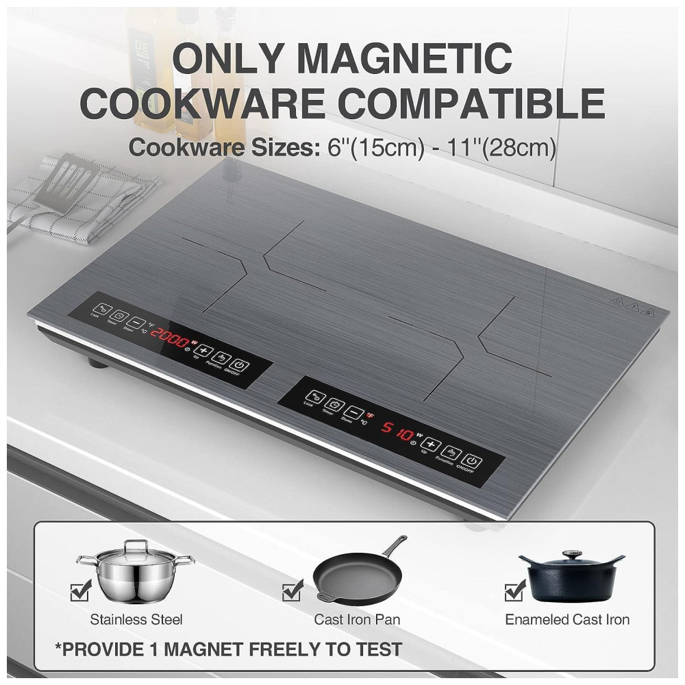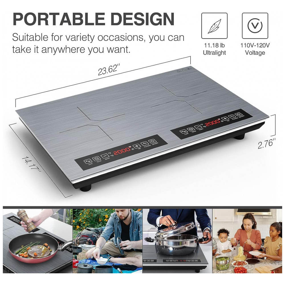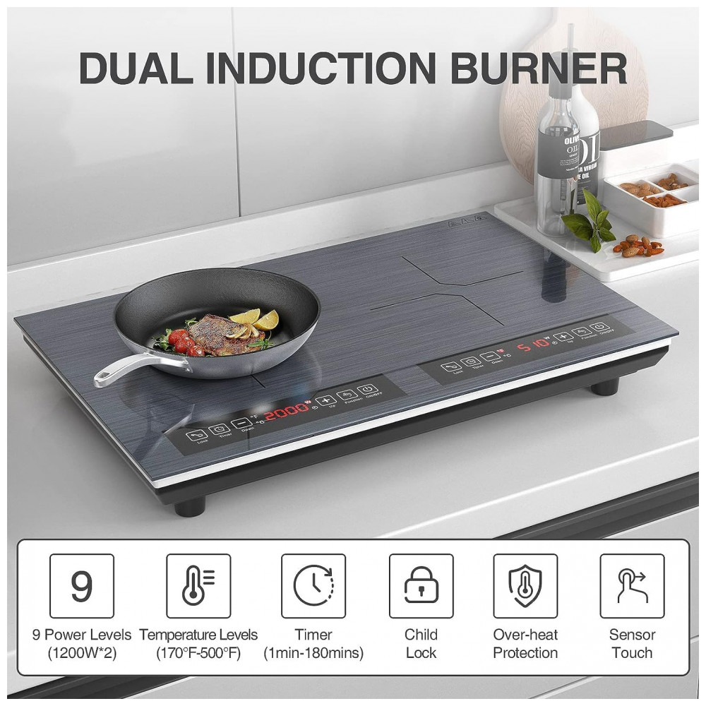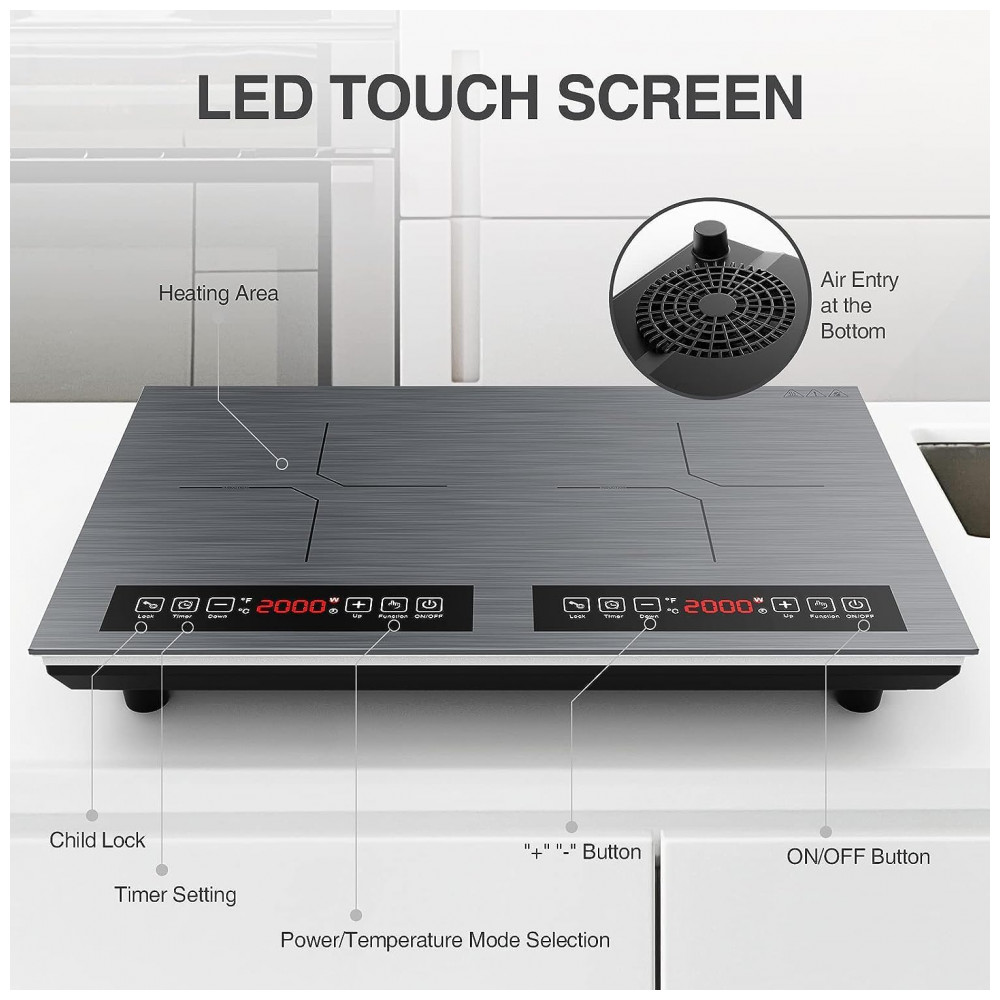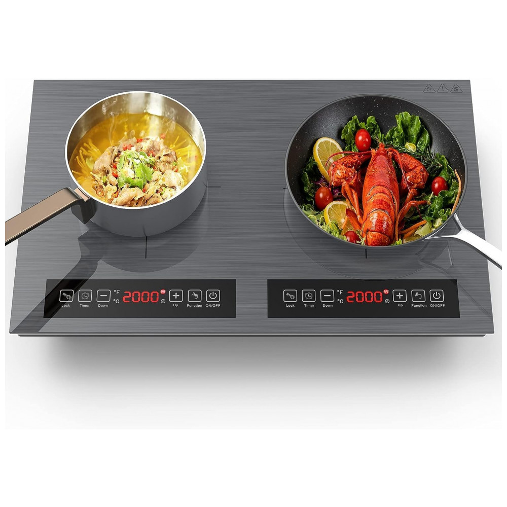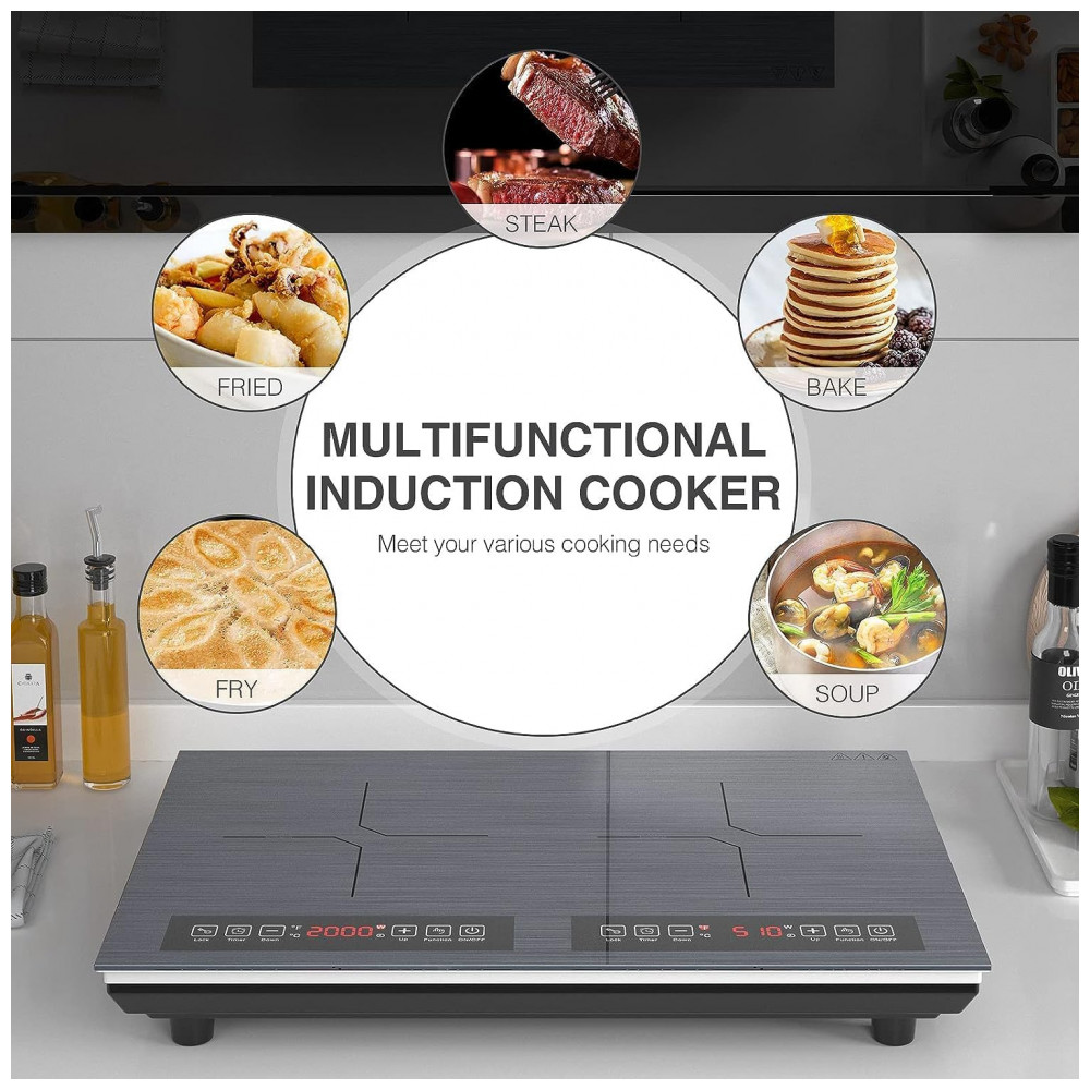 Cooktop Elétrico de Bancada com 2 Queimadores de Indução e Controle Digital 110V 2000W QTYANCY Cinza