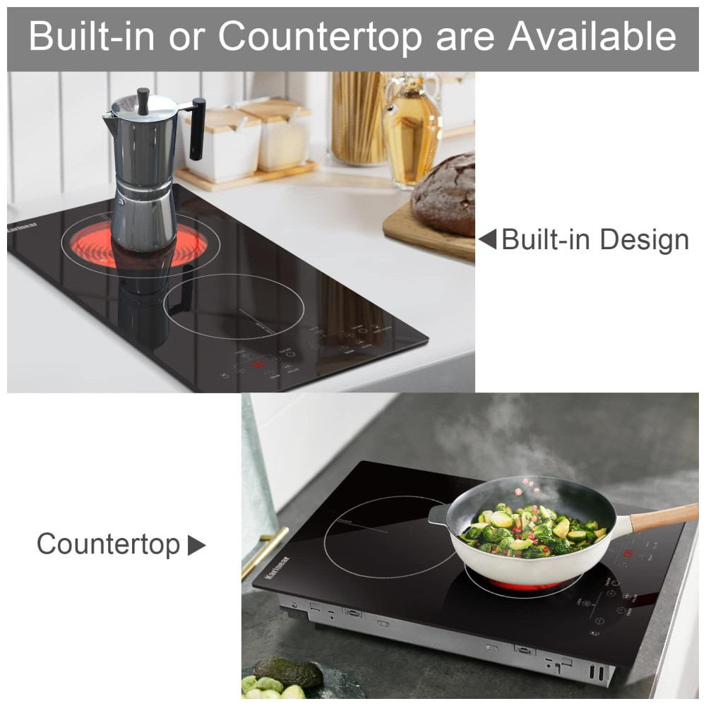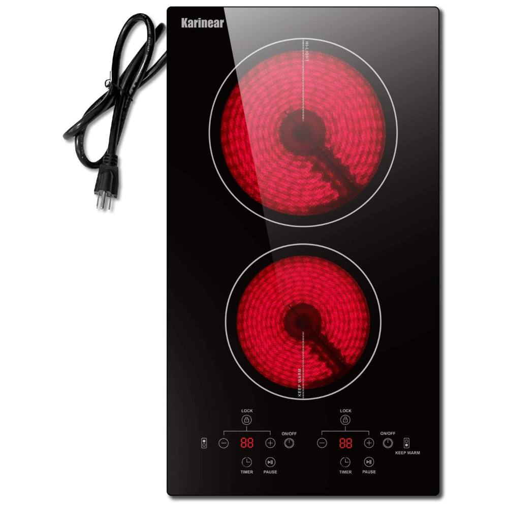 O Cooktop Elétrico de Cerâmica Karinear 2 Bocas oferece segurança e praticidade em sua cozinha. Cada boca corresponde a uma área de operação independente, com funções de proteção como trava de segurança para crianças, timer de 99 minutos, desligamento automático, aviso de calor residual e função de pausa. Este cooktop elétrico de 110v vem com plugue, dispensando a necessidade de um eletricista. Com 9 níveis de potência, é ideal para cozinhar, fritar, refogar, cozinhar no vapor, ferver, grelhar e assar. Sua superfície de vidro cerâmico preto é moderna e fácil de limpar, tornando a experiência na cozinha ainda mais agradável. Compatível com diversos tipos de utensílios de cozinha, o Cooktop Elétrico de Cerâmica Karinear 2 Bocas traz praticidade e modernidade para todas as suas receitas.