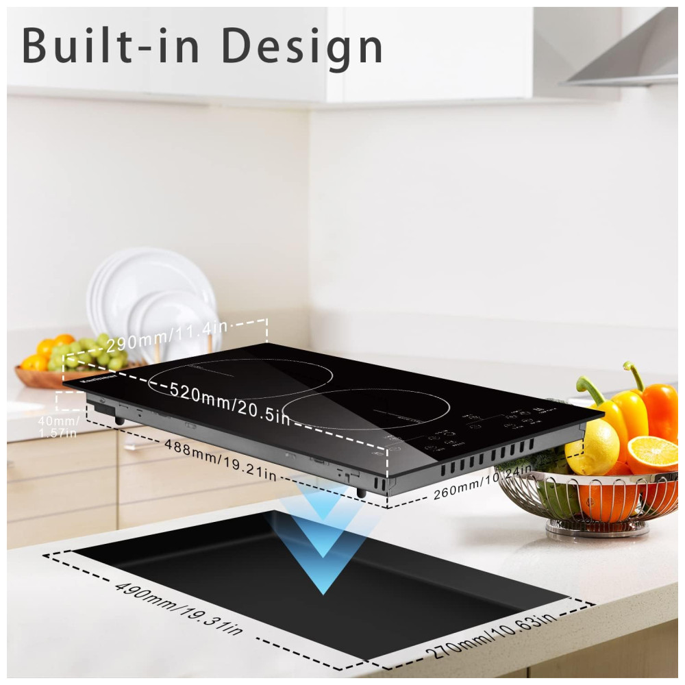 Cooktop Elétrico de Cerâmica Karinear 2 Bocas 110v 30cm Embutido com Trava de Segurança Timer e Proteção Infantil