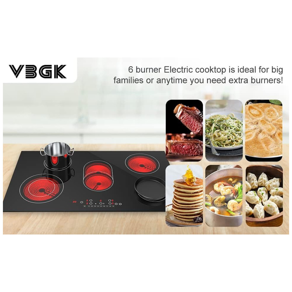 e confiável o fogão elétrico VBGK para cozinhar possui proteção múltipla, como proteção contra superaquecimento, indicação de calor residual, desligamento automático e trava de segurança para crianças. A superfície cristalina pode resistir a altas temperaturas e é mais durável de usar.