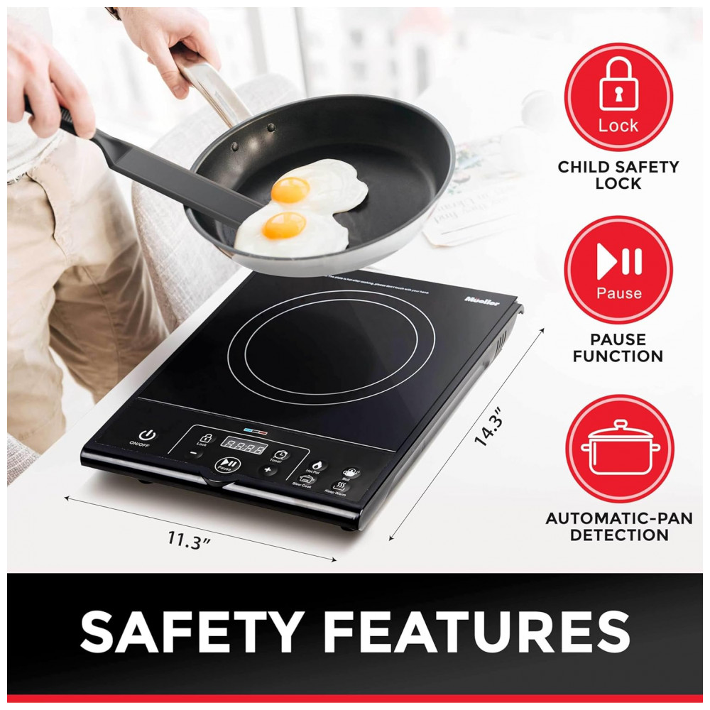 Cooktop Elétrico de Indução Portátil com Detecção Automática de Panela 110V 1800W Mueller Austria Preto