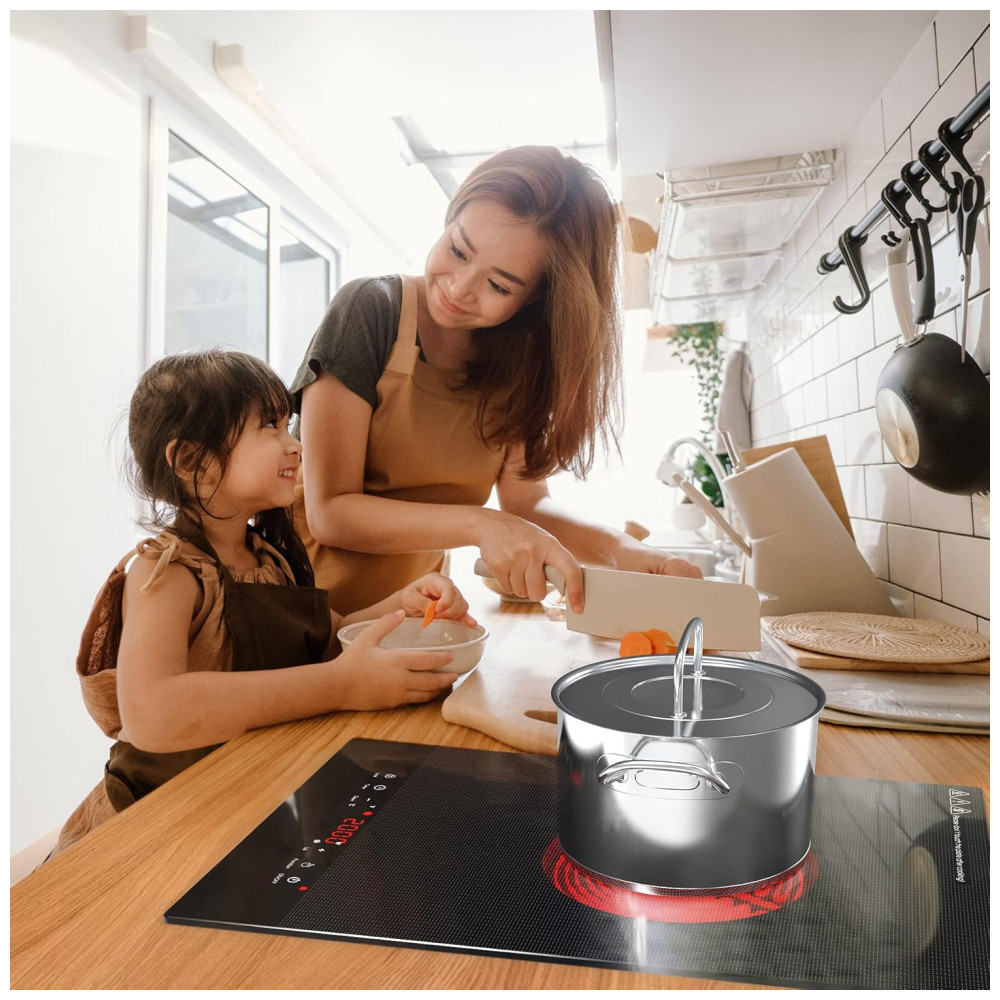 O painel de cristal preto não só confere um visual moderno, mas também é resistente a arranhões, desgaste e altas temperaturas, além de ser fácil de limpar. Este cooktop oferece várias funções de segurança, incluindo proteção contra superaquecimento, indicação de calor residual, desligamento automático e trava de segurança para crianças, garantindo um uso seguro e confiável.