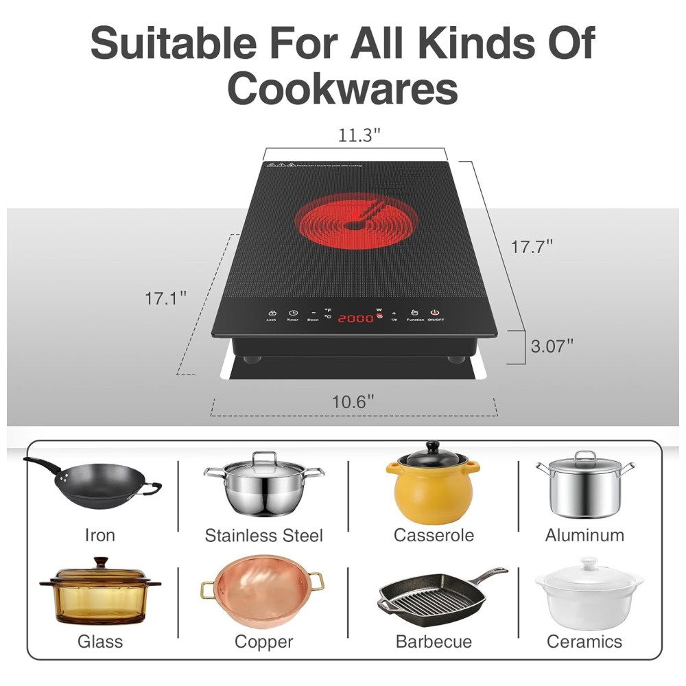 O Cooktop elétrico portátil VBGK é ideal para quem busca versatilidade e praticidade na cozinha. Compatível com a tomada elétrica padrão de 110 V e 120 V, presente na maioria das residências na América do Norte, este fogão é leve, compacto e fácil de armazenar, tornando-o perfeito para dormitórios, cozinhas familiares, trailers, barcos e outros ambientes.