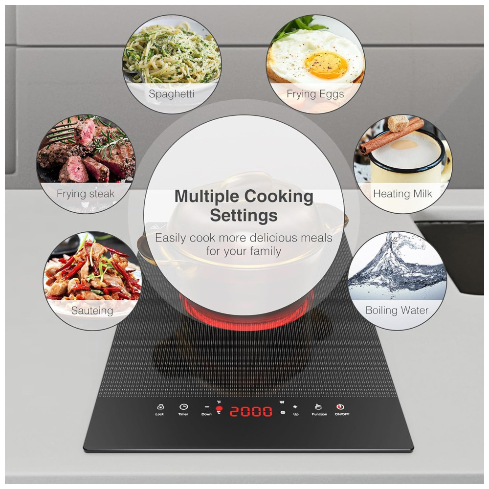 Cooktop Elétrico de Indução Portátil com Painel Digital Queimador Único 9 Níveis de Potência Trava para Crianças Temporizador e Proteção Contra Superaquecimento 110V 2000W VBGK Preto