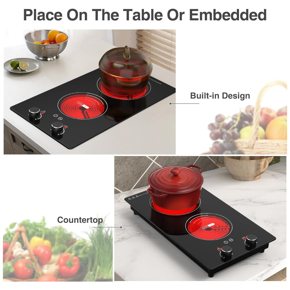 O VBGK Ceramic Double Cooktop é um cooktop elétrico de cerâmica que oferece duas áreas de aquecimento independentes, permitindo preparar diferentes pratos simultaneamente. Com uma potência total de 2000 watts, este cooktop possui nove níveis de potência para ajustar a intensidade do calor conforme suas necessidades culinárias, ideal para refogar, fritar, ferver, cozinhar no vapor, assar e mais.