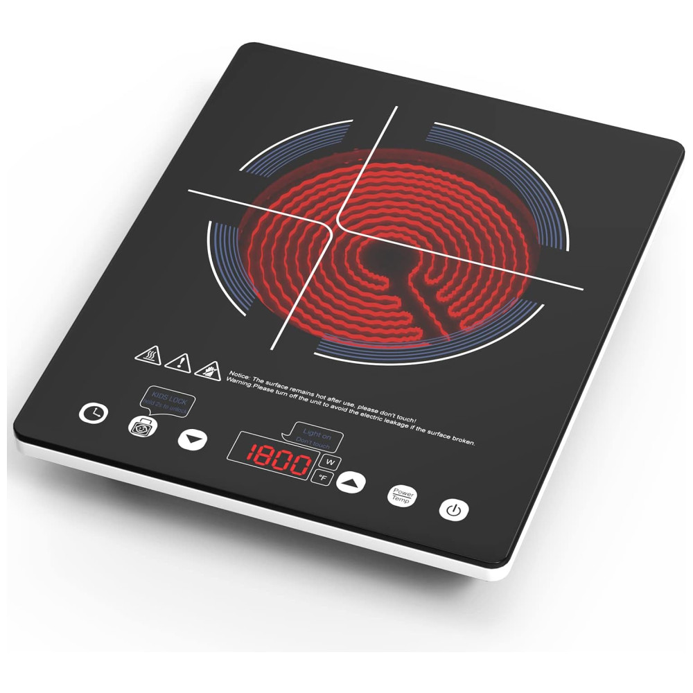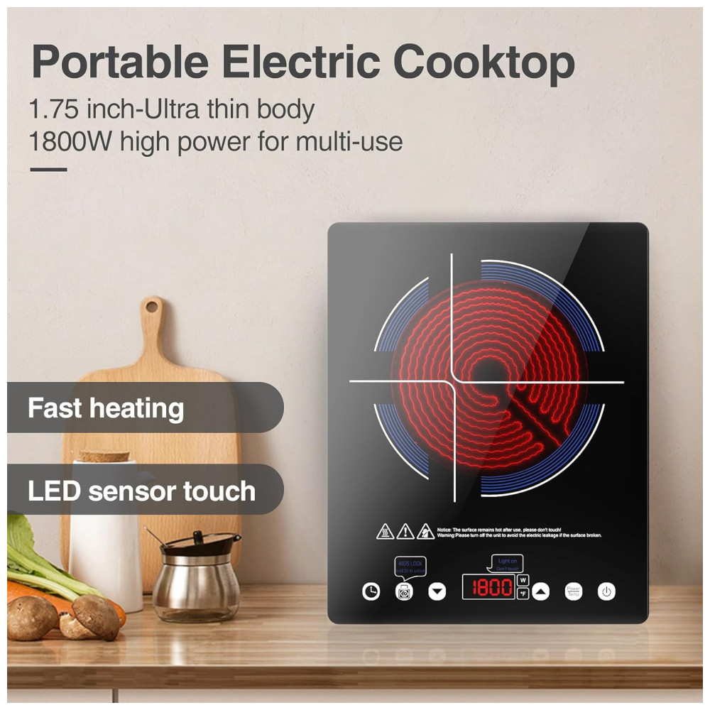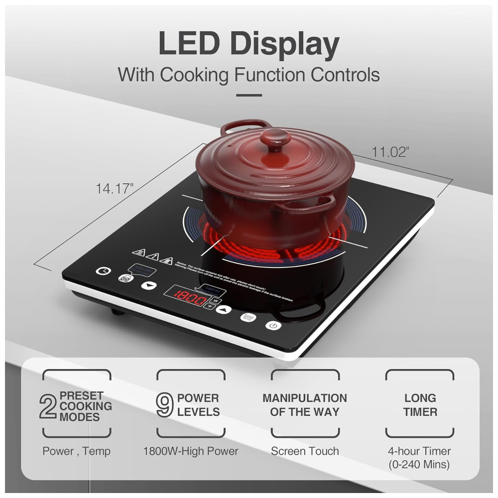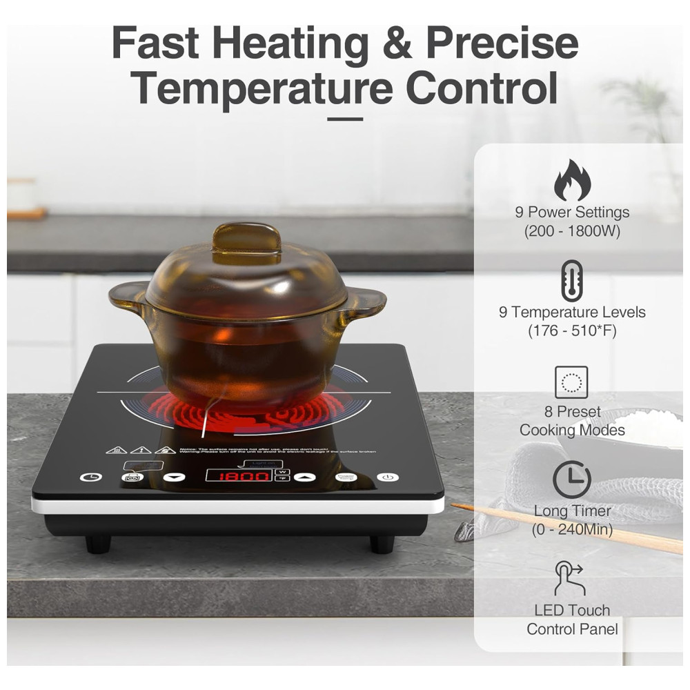 Cooktop Elétrico de Indução Portátil com Queimador Único Painel Digital 9 Níveis de Potência Trava para Crianças e Temporizador e Proteção Contra Superaquecimento 110V 1800W VBGK Preto