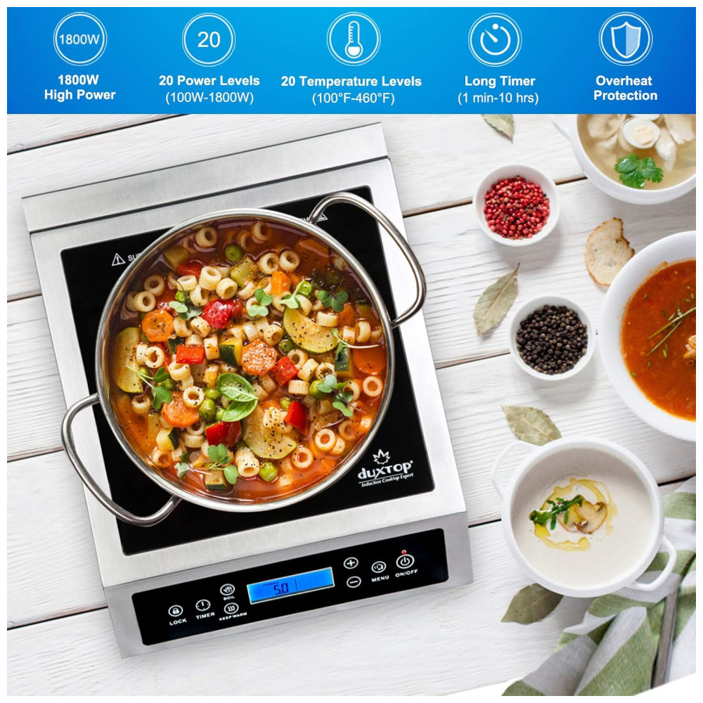 Descubra o Cooktop de Indução Portátil Profissional Duxtop, Queimador de Bancada Comercial, 1800 Watts com Sensor Touch e Tela LCD, P961LS/BT-C35-D: