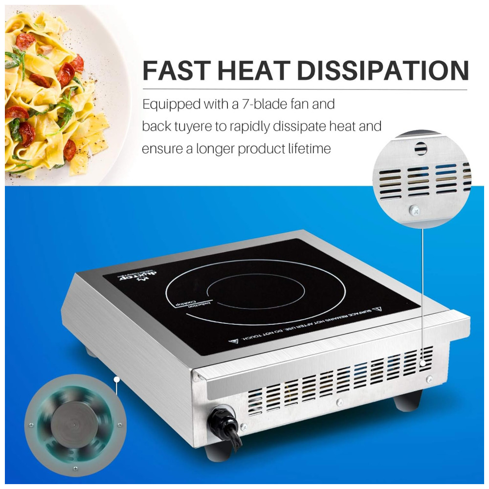 Compatibilidade com Panelas: Os fogões de indução dependem das panelas para aquecer, por isso é essencial escolher utensílios com fundo magnético com um diâmetro mínimo de 13 cm. O cooktop não funcionará sem panelas compatíveis. Deixe a placa de indução esfriar antes de limpar. Fabricado para desempenho confiável e durável em ambientes comerciais e profissionais, como restaurantes, cozinhas industriais e outros serviços de catering.