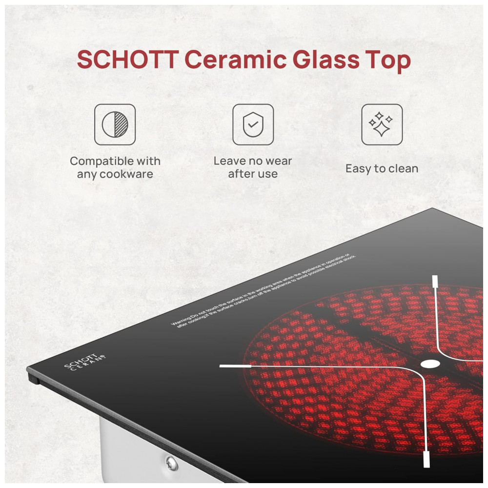 O sistema de aquecimento utiliza resistência elétrica sob o vidro cerâmico, com faixa de potência entre 120 W e 2.400 W, controlada por interface sensível ao toque com 9 níveis de aquecimento. A zona de aquecimento principal possui área útil de aproximadamente 21 cm, permitindo desde funções de manter aquecido em baixa potência até aquecimento mais intenso para frituras e salteados, respeitando o limite de potência indicado.