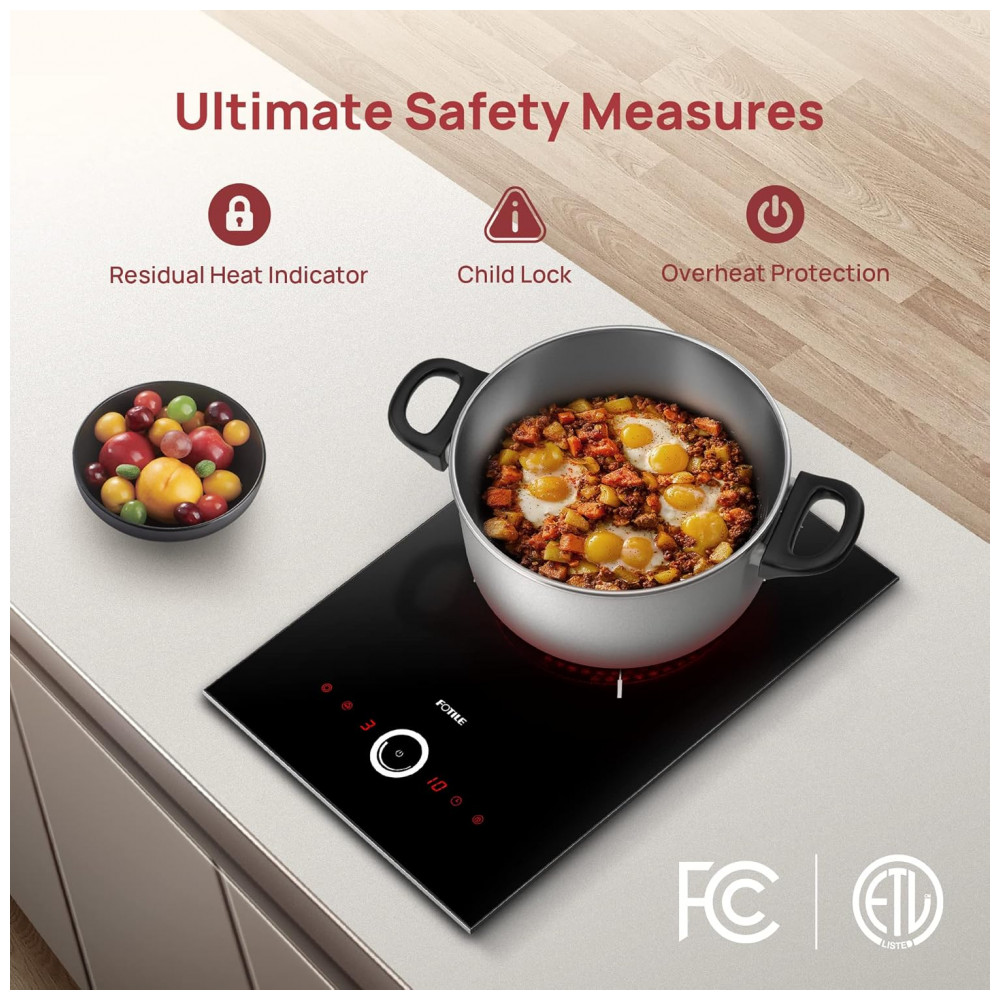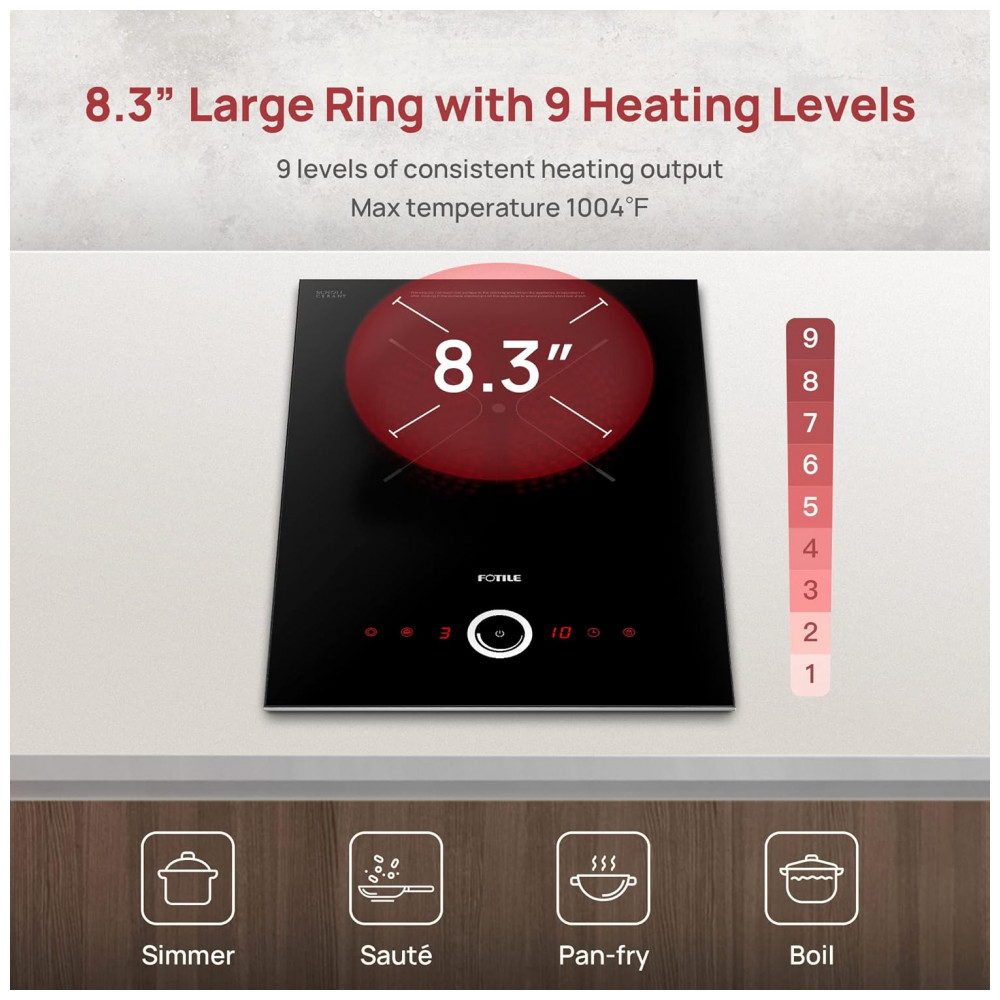 Cooktop elétrico de mesa 1 queimador Fotile vidro cerâmico preto 9 níveis de aquecimento proteção contra superaquecimento 220V