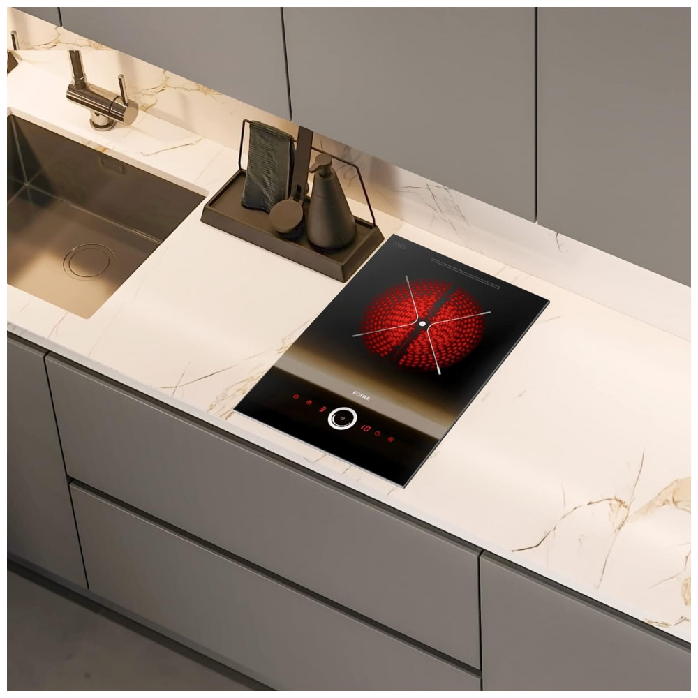 O cooktop elétrico Fotile EEG30101 é um equipamento de mesa embutido com um queimador, indicado para uso em cozinhas residenciais que necessitam de uma zona de cocção compacta e independente. O painel em vidro cerâmico SCHOTT preto oferece superfície lisa e resistente, compatível com diversos tipos de panelas, permitindo instalação modular em tampos com recorte adequado.