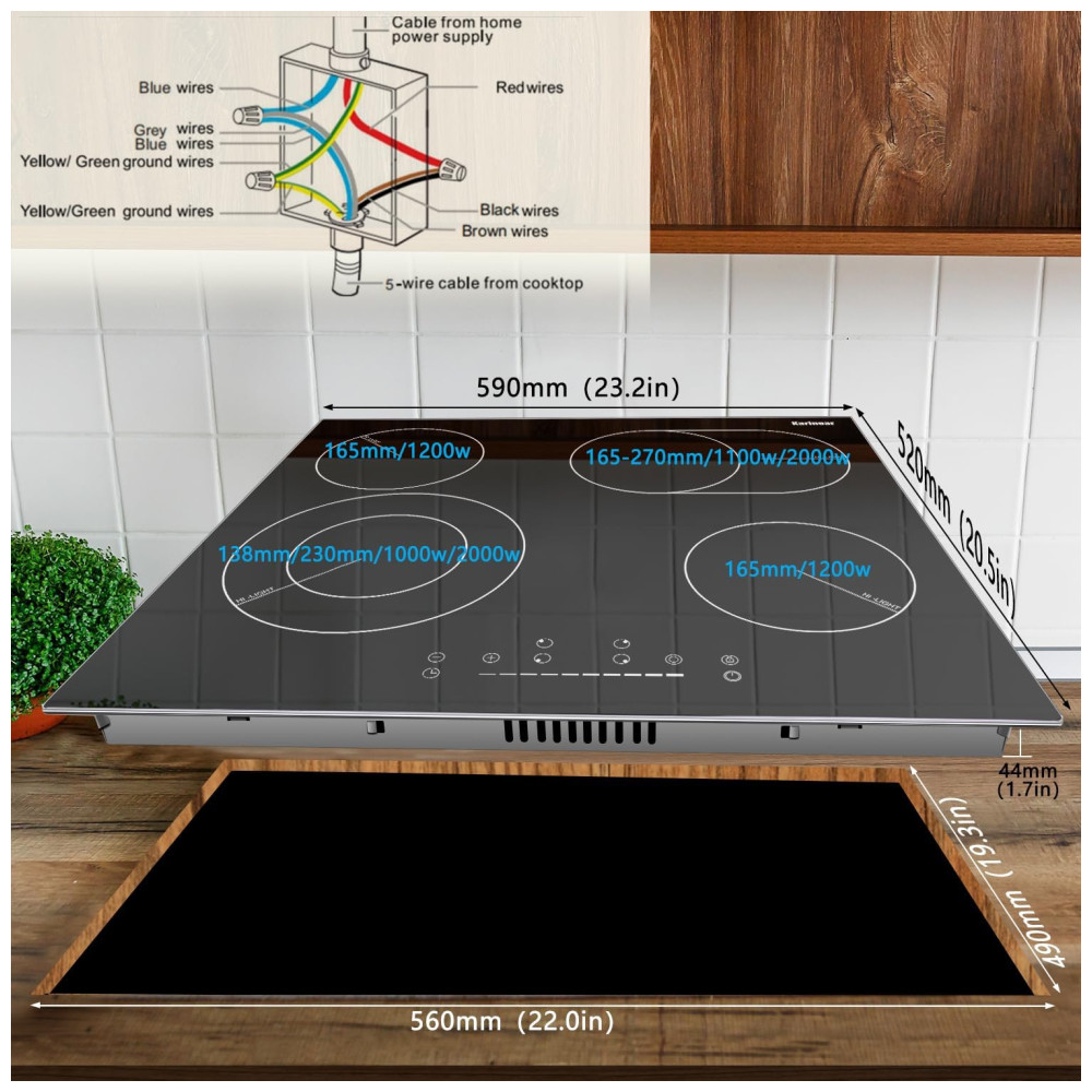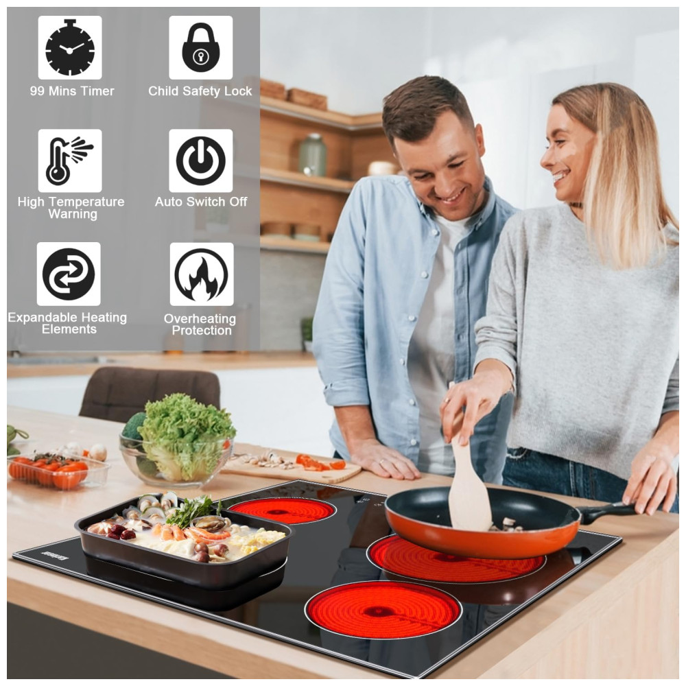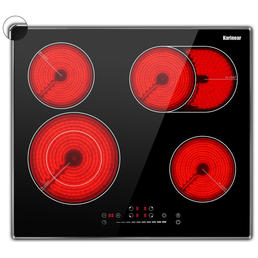 Cooktop Elétrico Karinear 4 Bocas 60cm Cooktop Cerâmico Embutido com Vidro de Proteção e Moldura Metálica Queimadores Expansíveis