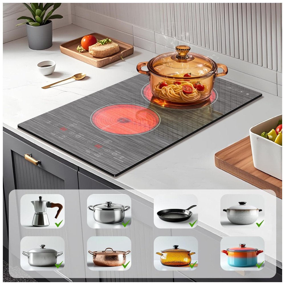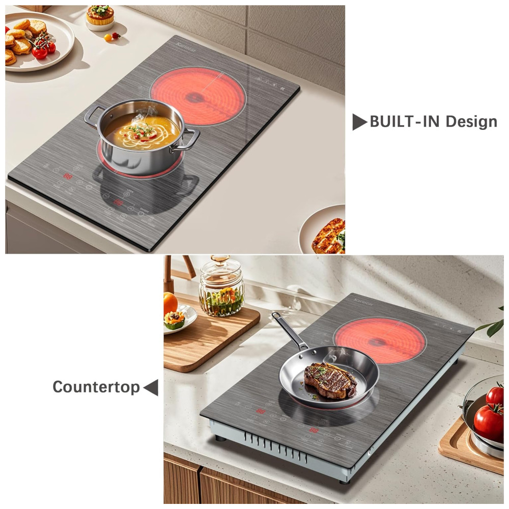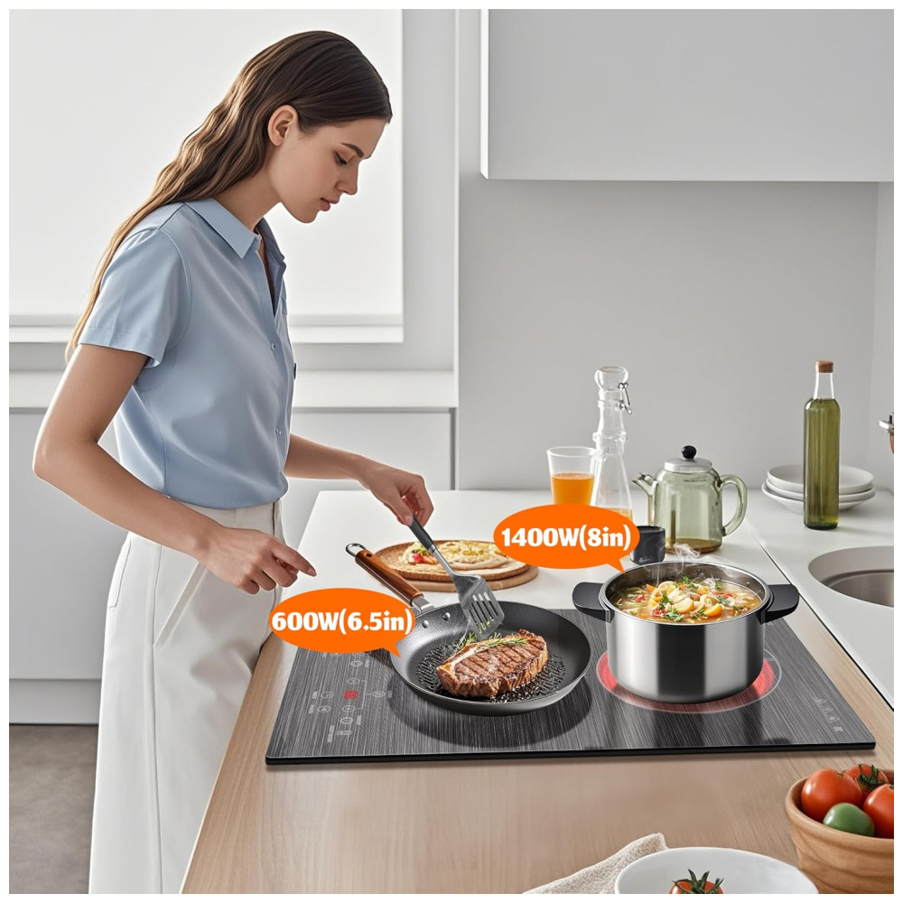 O Cooktop Elétrico de 2 Bocas da Karinear é a escolha perfeita para quem busca praticidade e sofisticação na cozinha. Com tampo de vidro liso e bonito padrão, esse cooktop de 30 cm é equipado com timer de 99 minutos, trava de segurança infantil, função de pausa, indicação de calor residual e proteção contra superaquecimento. Além disso, possui dois queimadores independentes, sendo um de 1400W com 19 níveis de potência e outro de 600W com 2 níveis. Pode ser usado na bancada ou embutido, tornando a sua cozinha mais especial e elegante. Com tecnologia de cerâmica, é seguro para todos, inclusive gestantes. Fácil de limpar e manter, esse cooktop é a solução perfeita para cozinhas modernas e funcionais.