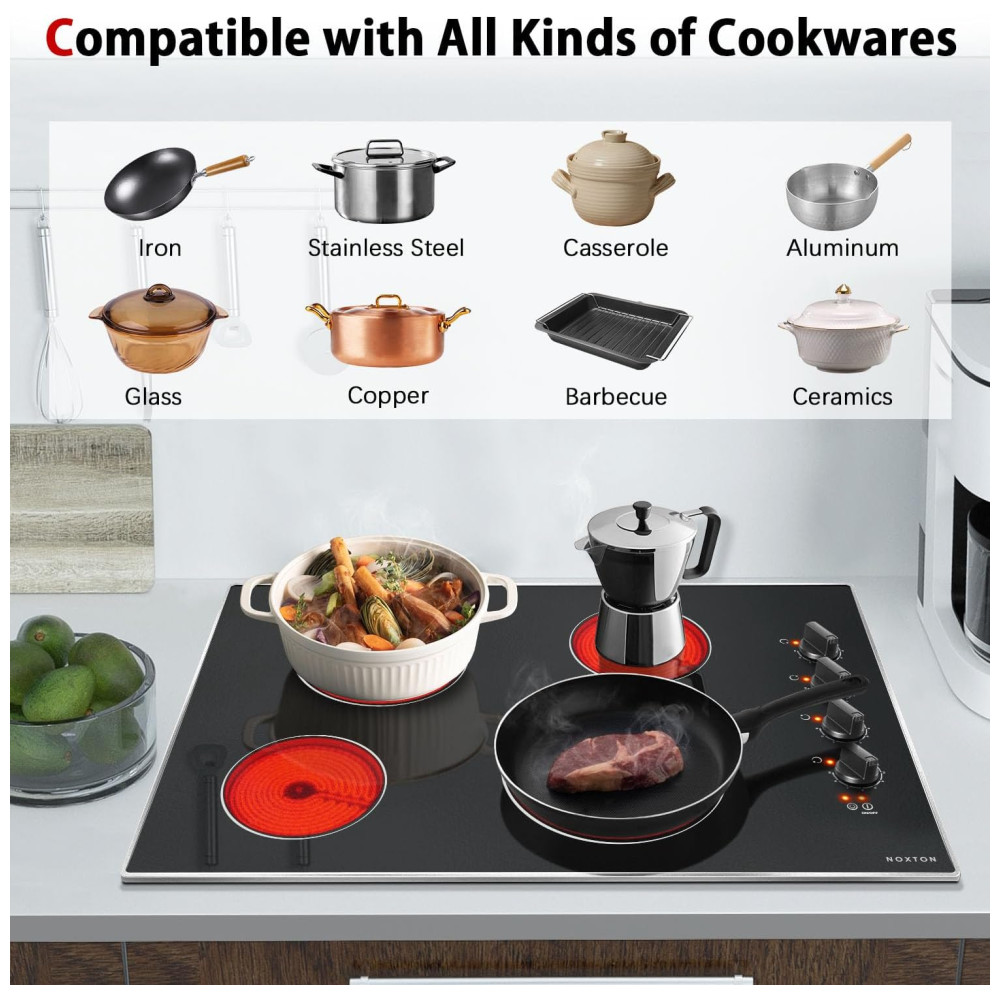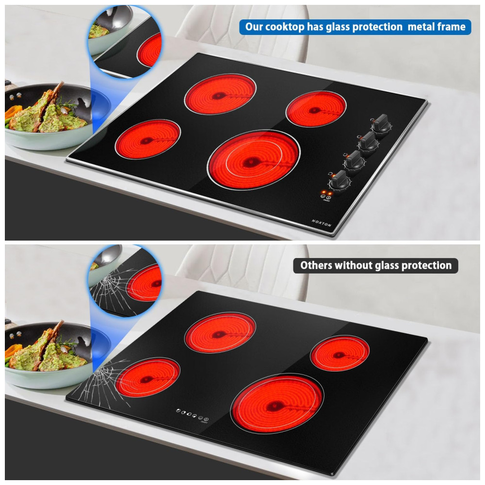 Cooktop Elétrico Noxton 76 cm 4 Bocas Embutir Vidro Temperado Controle Botões Resistente e Moderno