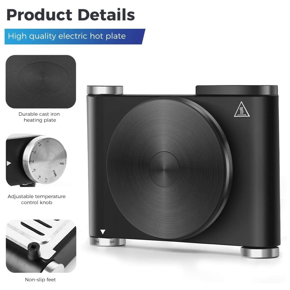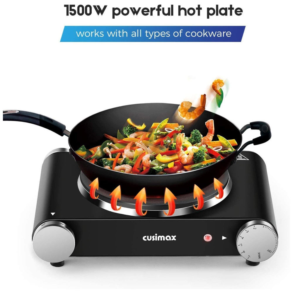 Apresentando o Cooktop Elétrico Cusimax com Queimador Único de Ferro Fundido, 1500W, Portátil, com Controle de Temperatura Ajustável e Pés de Borracha Antiderrapantes, Versão Atualizada