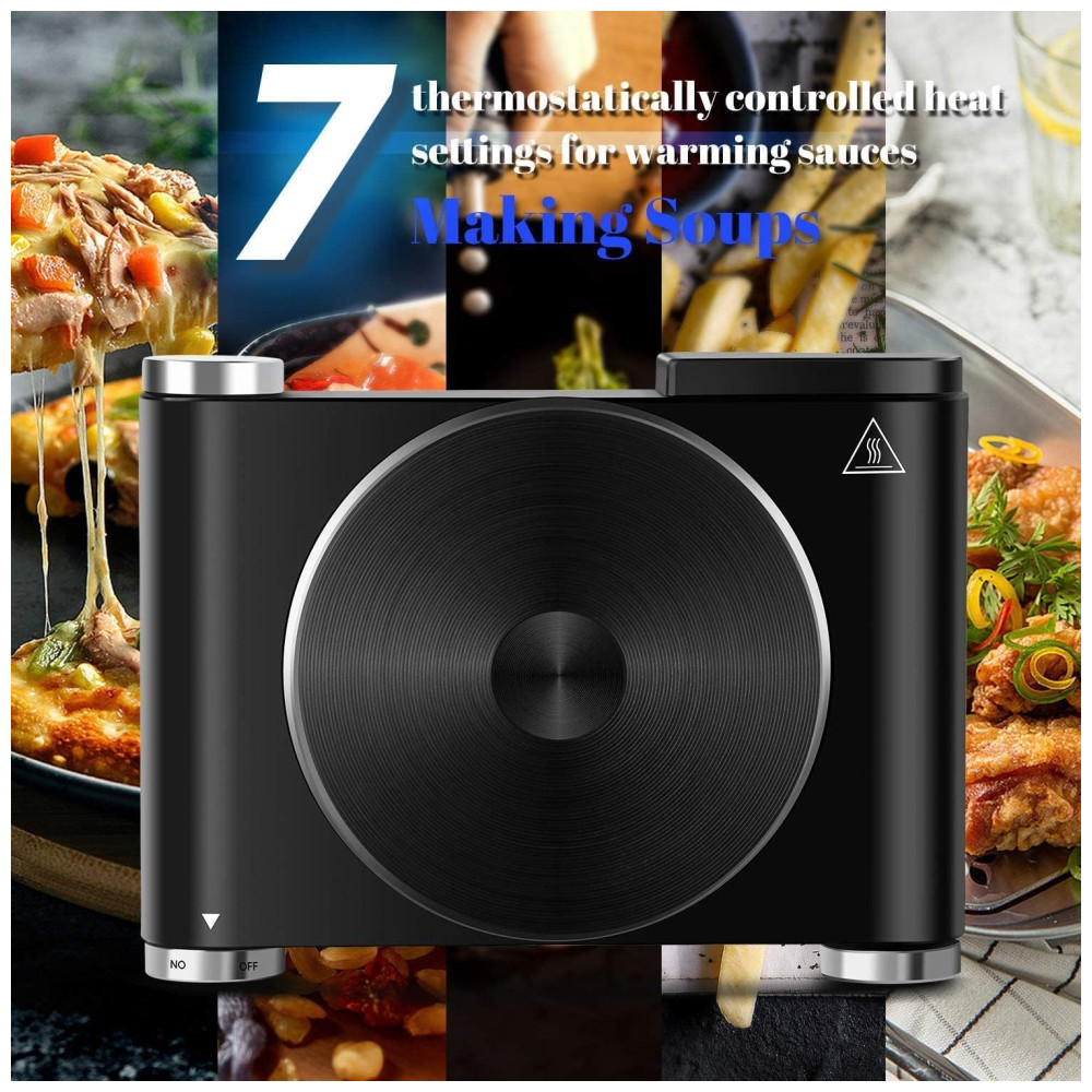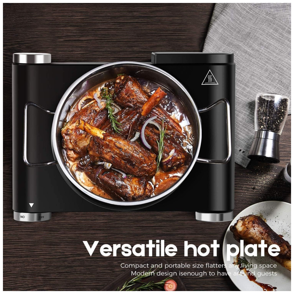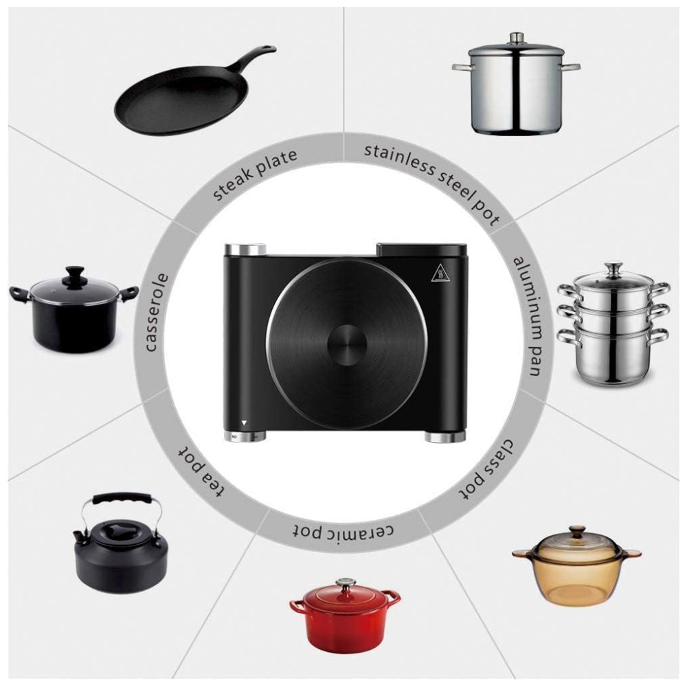 Equipada com uma potente placa de aquecimento de 18,8 cm, compatível com panelas e frigideiras com tamanho máximo de 18,8 cm. Pode ser utilizado com qualquer tipo de utensílio de cozinha, como panelas de alumínio, cobre, ferro fundido e aço inoxidável não magnético, aquecendo eficientemente com mínima perda de calor. Comparada aos fogões de indução, a placa elétrica é segura para usar e não emite radiação nociva.