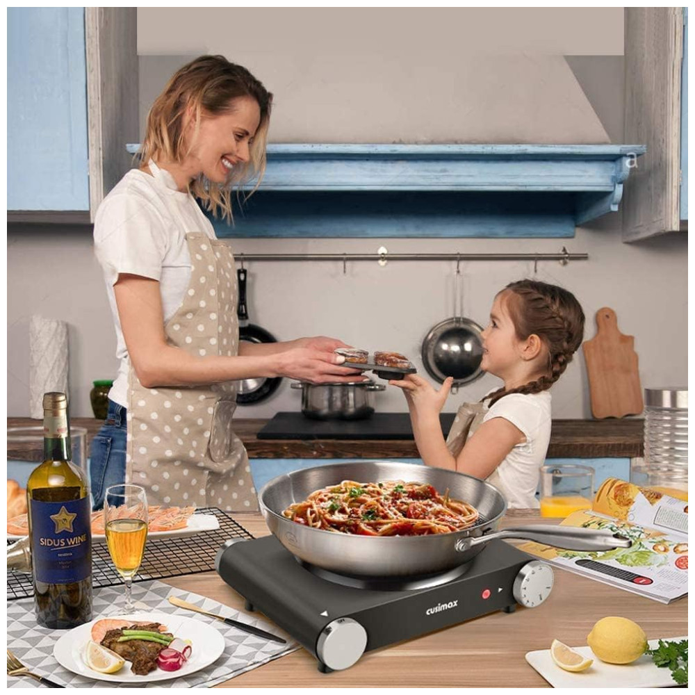 O Cooktop Elétrico Cusimax utiliza 7 configurações de calor controladas termostaticamente para cozinhar uma variedade de alimentos, como molhos quentes, ovos mexidos, queijo grelhado, sopas, massas, vegetais e muito mais. Também pode ser usada como queimador extra para manter os alimentos aquecidos.