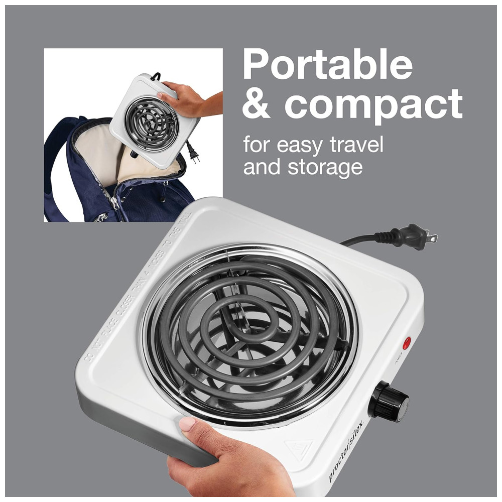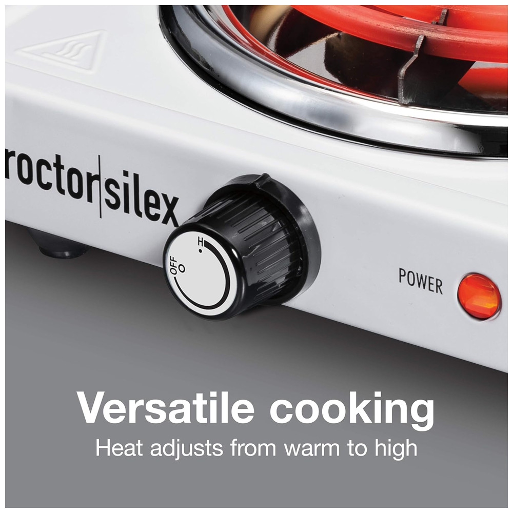 Cozimento Versátil – Ajuste de calor que varia de morno a alto. O botão de ajuste de temperatura deste fogão elétrico portátil permite selecionar a temperatura ideal para cada tarefa, desde manter os alimentos aquecidos até ferver água para café ou chá.