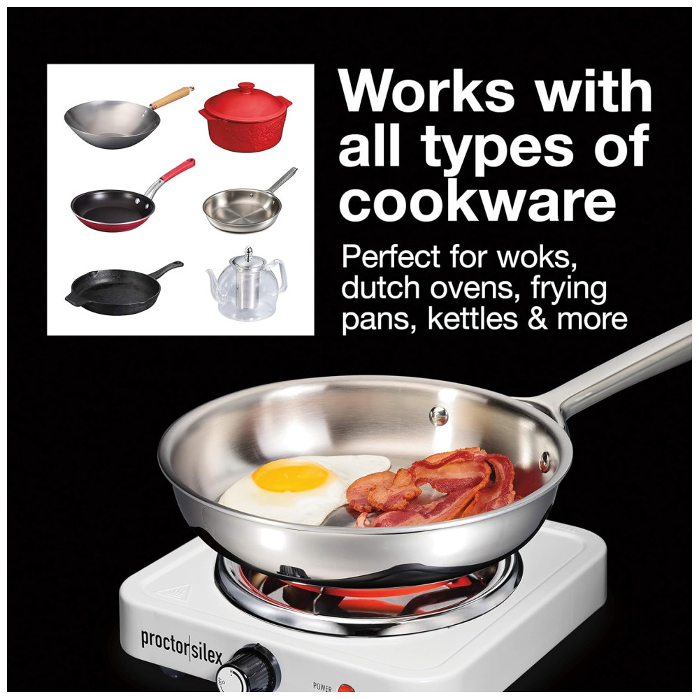 Funciona com Todos os Tipos de Utensílios de Cozinha – Este Cooktop elétrico de temperatura ajustável (de uma boca) é compatível com todos os tipos de panelas, incluindo alumínio (que não funciona em fogões de indução).