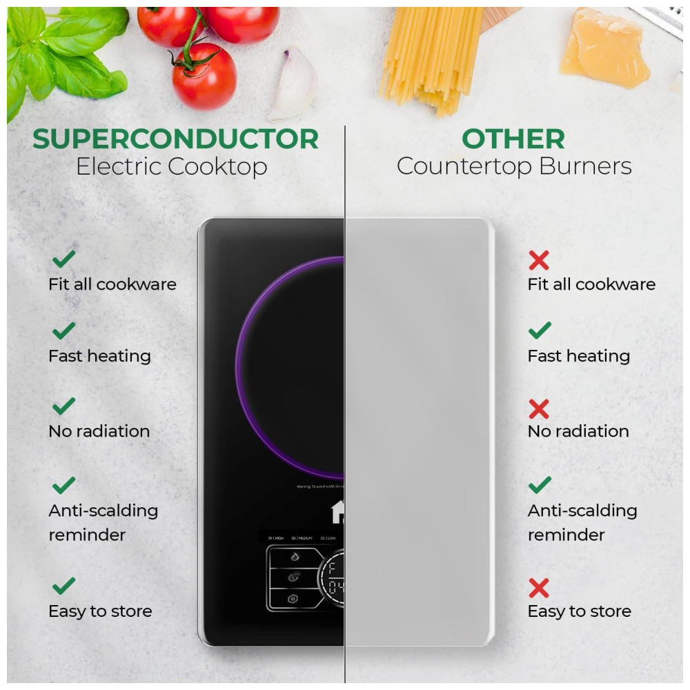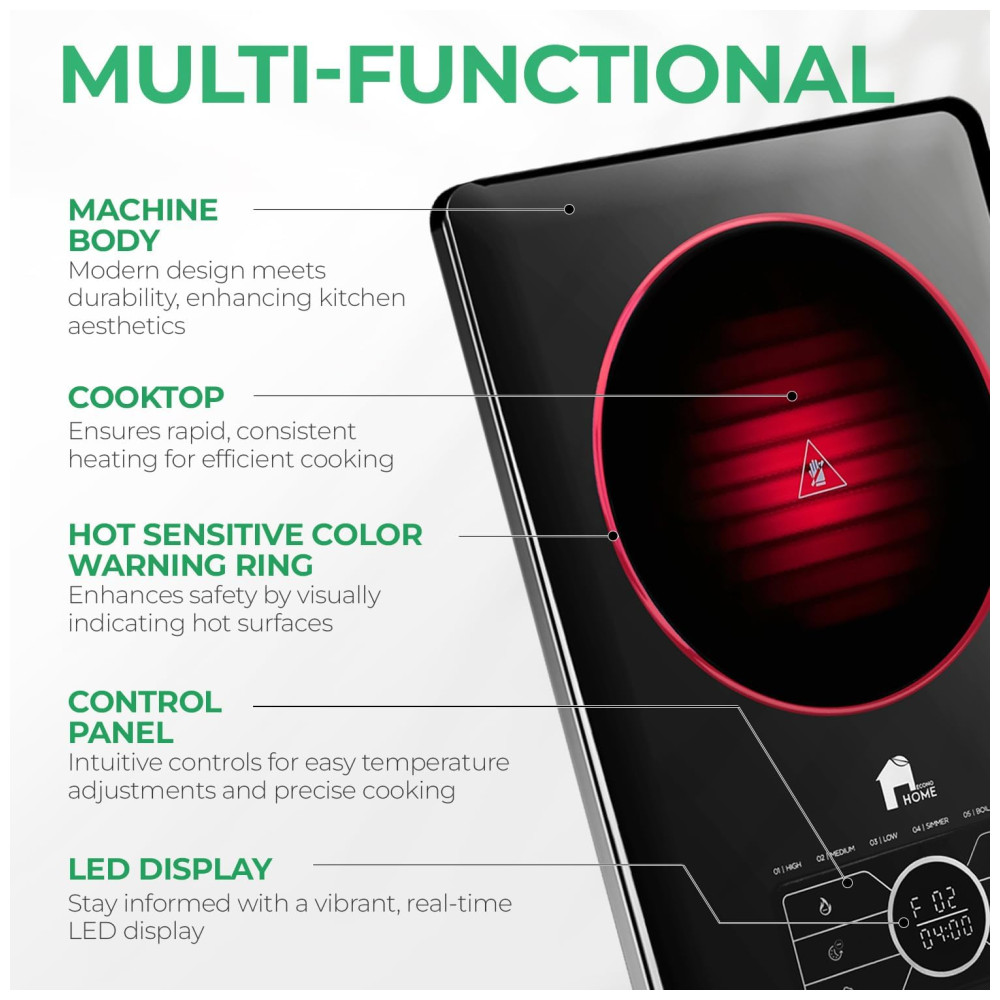 Este cooktop elétrico é ideal para quem busca eficiência e rapidez na cozinha. Com uma potente saída de 1500 W, ele é compatível com uma ampla variedade de utensílios de cozinha, incluindo panelas de indução, sem risco de danos.