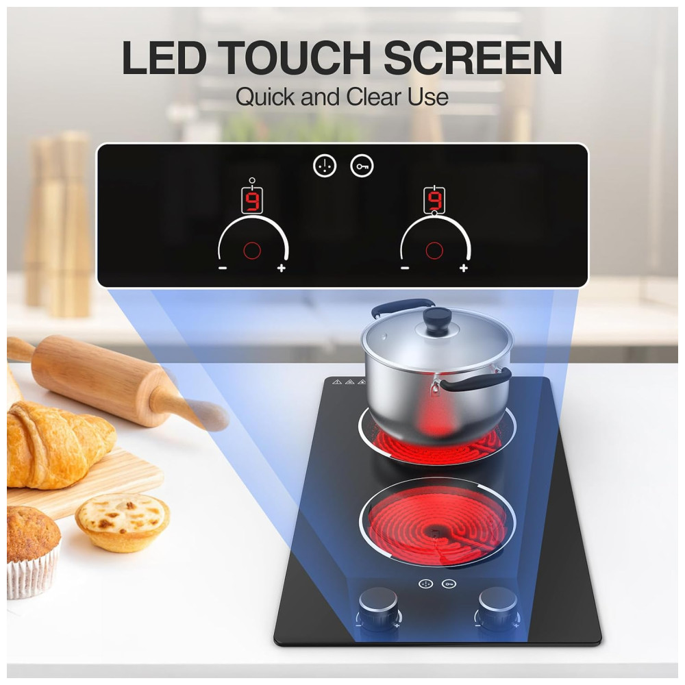 Este cooktop elétrico é uma solução prática e fácil de usar, ideal para quem busca conveniência na cozinha. Basta conectá-lo a qualquer tomada de 110 ou 120V – não é necessário chamar um eletricista para a instalação. Com duas bocas, o cooktop oferece várias funções de segurança, como temporizador, desligamento automático, trava para crianças, indicador de calor residual e proteção contra superaquecimento.